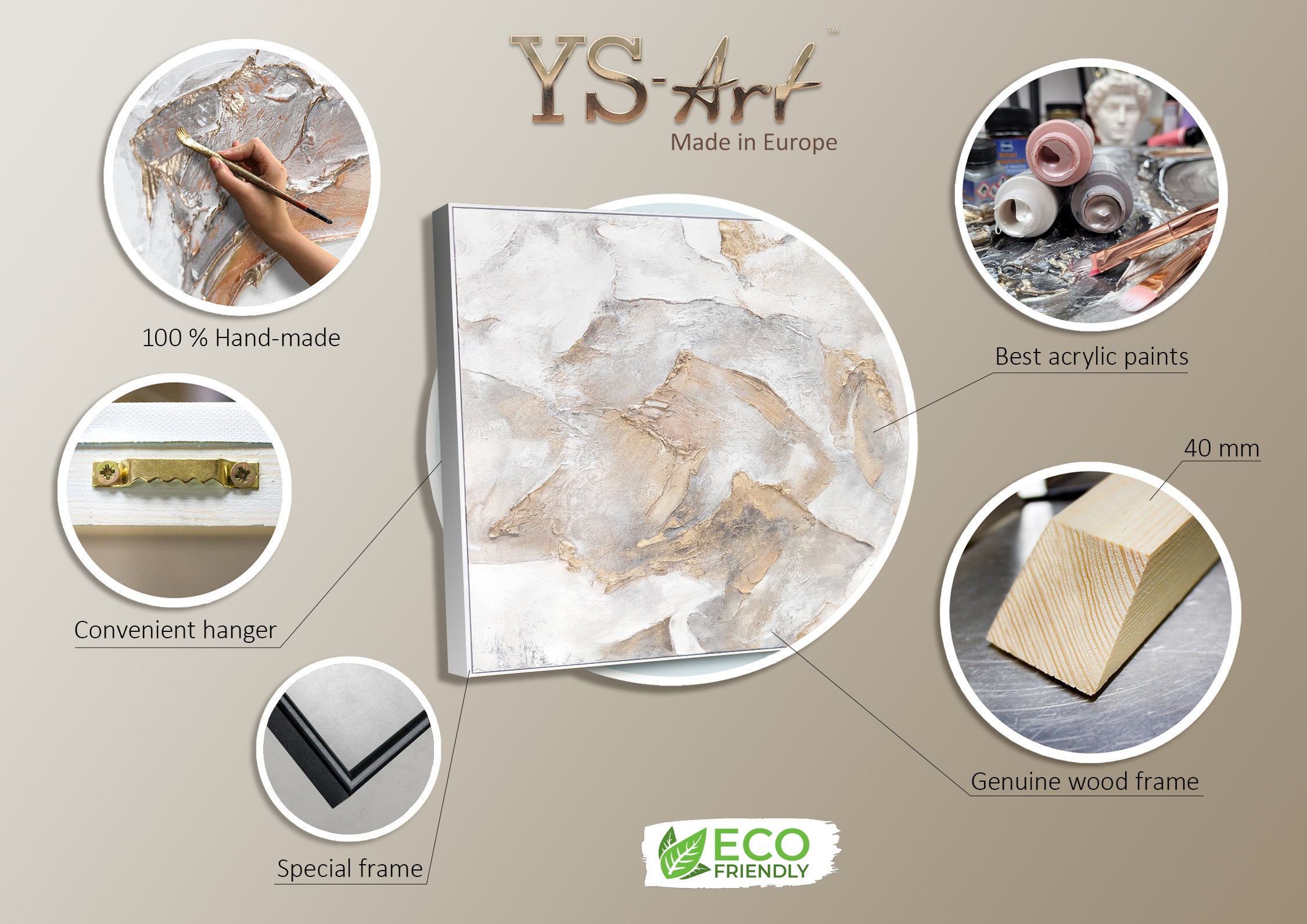 YS-Art | Handgemalte abstrakte bilder mit rahmen "Berggipfel"