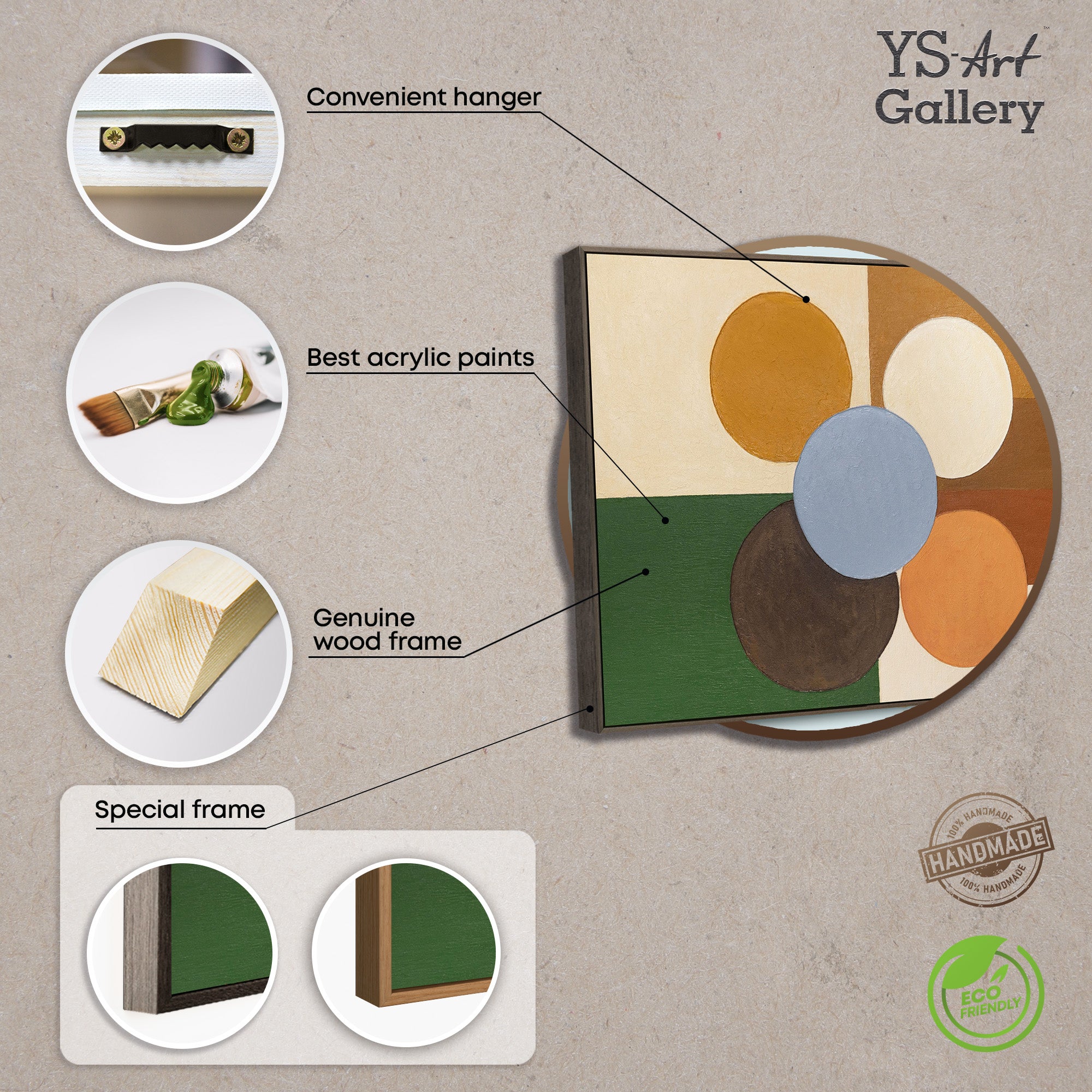 „Sphäre der Balance“ ist eine moderne abstrakte Acrylmalerei mit klaren Kreisformen und ruhiger geometrischer Struktur. Die ausgewogene Komposition aus Beige Ocker Grün Blau und warmen Naturfarben erzeugt eine harmonische Flächenwirkung und vermittelt Stabilität sowie visuelle Ruhe.