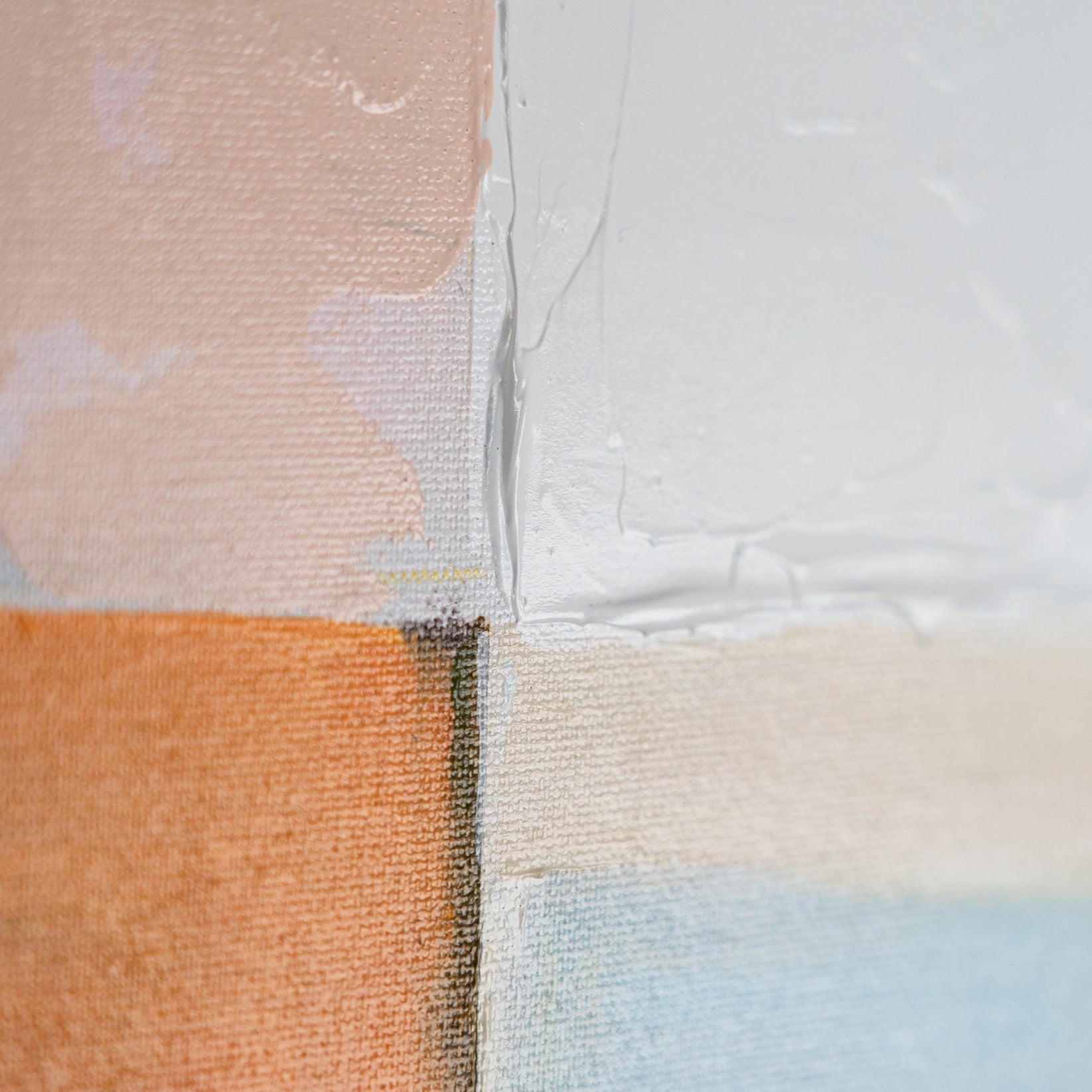 Ein ausdrucksstarkes Kunstwerk, das mit klaren Farbflächen, geometrischen Strukturen und intensiver Farbabstimmung beeindruckt. „Geometrische Illusion II“ spielt mit Kontrasten aus Beige, Rot, Blau und Weiß, wobei jede Form wie ein Puzzleteil in das Gesamtbild greift. Die haptische Struktur und das matte Finish verleihen dem Bild Tiefe und Eleganz zugleich.
