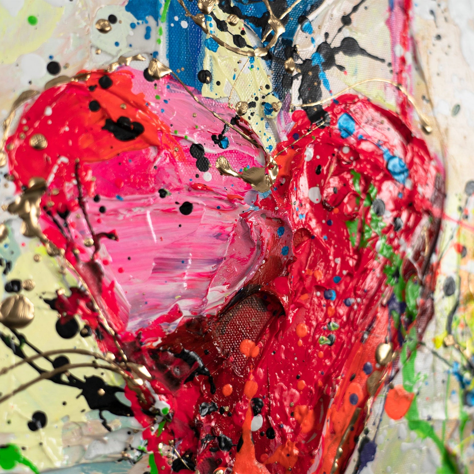 • Farbexplosion Acrylmalerei Herzmotiv Struktur Textur modern