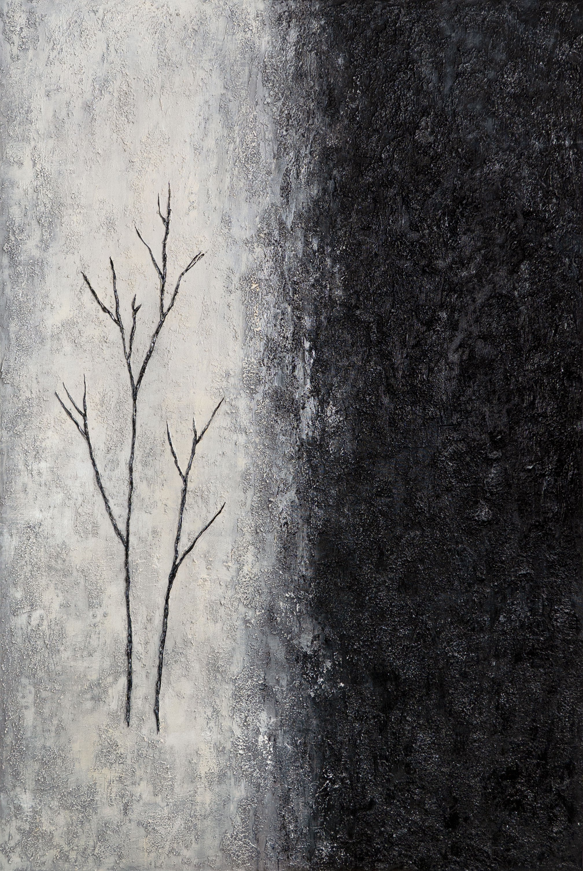 - Ausdrucksstarkes Schwarz-Weiß-Gemälde mit Naturmotiv