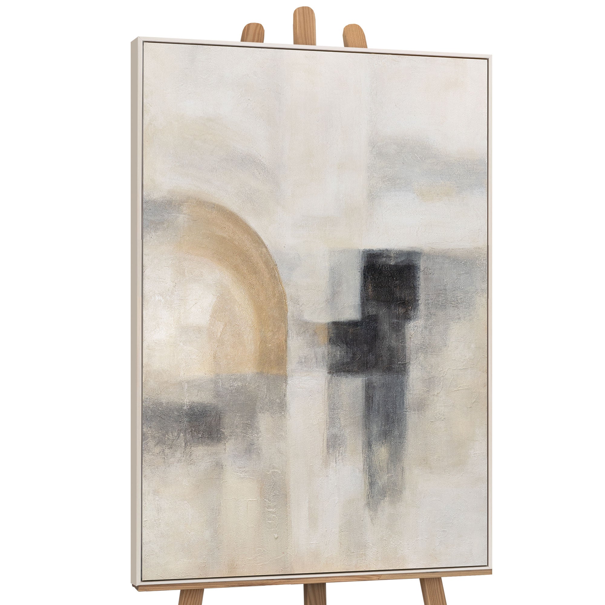 „Geisterhaftes Licht“ ist ein handgemaltes Acrylbild auf Leinwand, das durch seine sanfte, minimalistische Farbgestaltung besticht. Zarte Nuancen in Beige, Grau und Creme bilden eine harmonische Basis, während geometrische Andeutungen und ein halbkreisförmiger Akzent in Gold-Braun dem Bild Tiefe und Balance verleihen. Die strukturierte Oberfläche verstärkt die sinnliche Ausstrahlung und macht jedes Werk zu einem Unikat.
