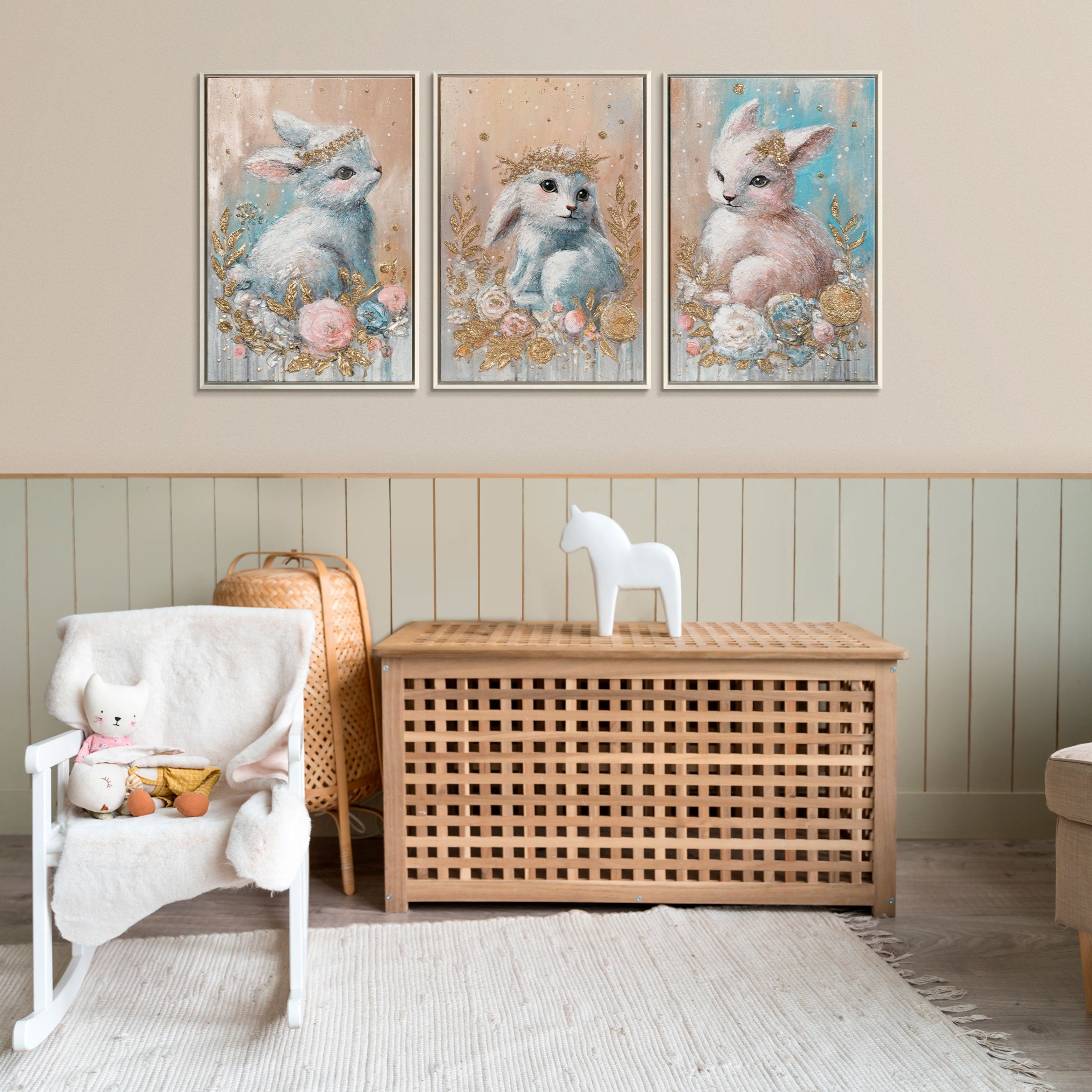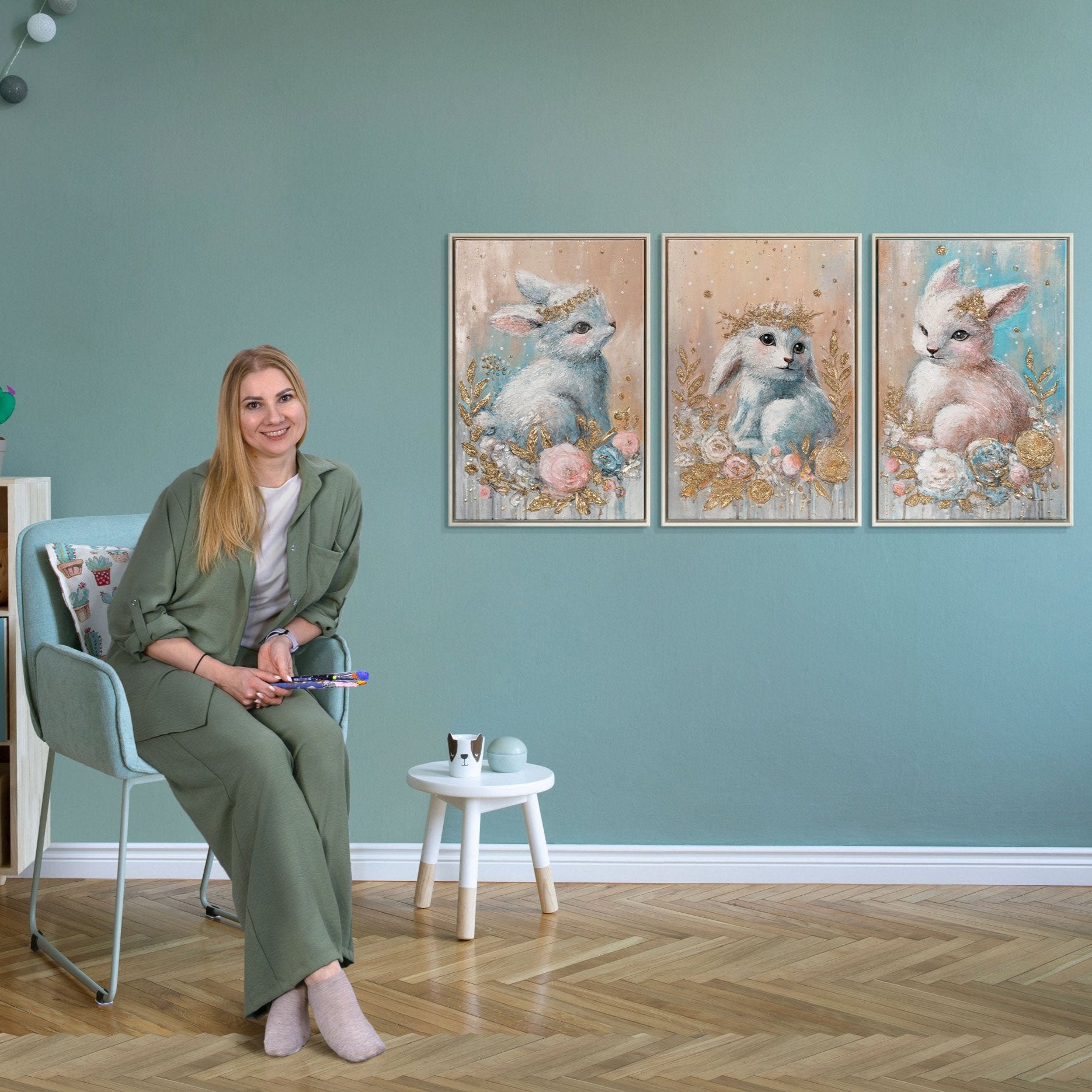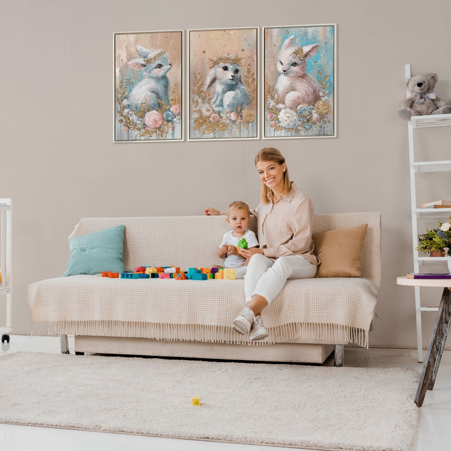 Dieses Acryl Triptychon eignet sich ideal als dekoratives Highlight für Baby- und Kinderzimmer, schafft eine freundliche und beruhigende Umgebung und verbindet künstlerische Originalität mit liebevoller Gestaltung. Die große Formatvielfalt macht es flexibel einsetzbar für unterschiedliche Raumgrößen.