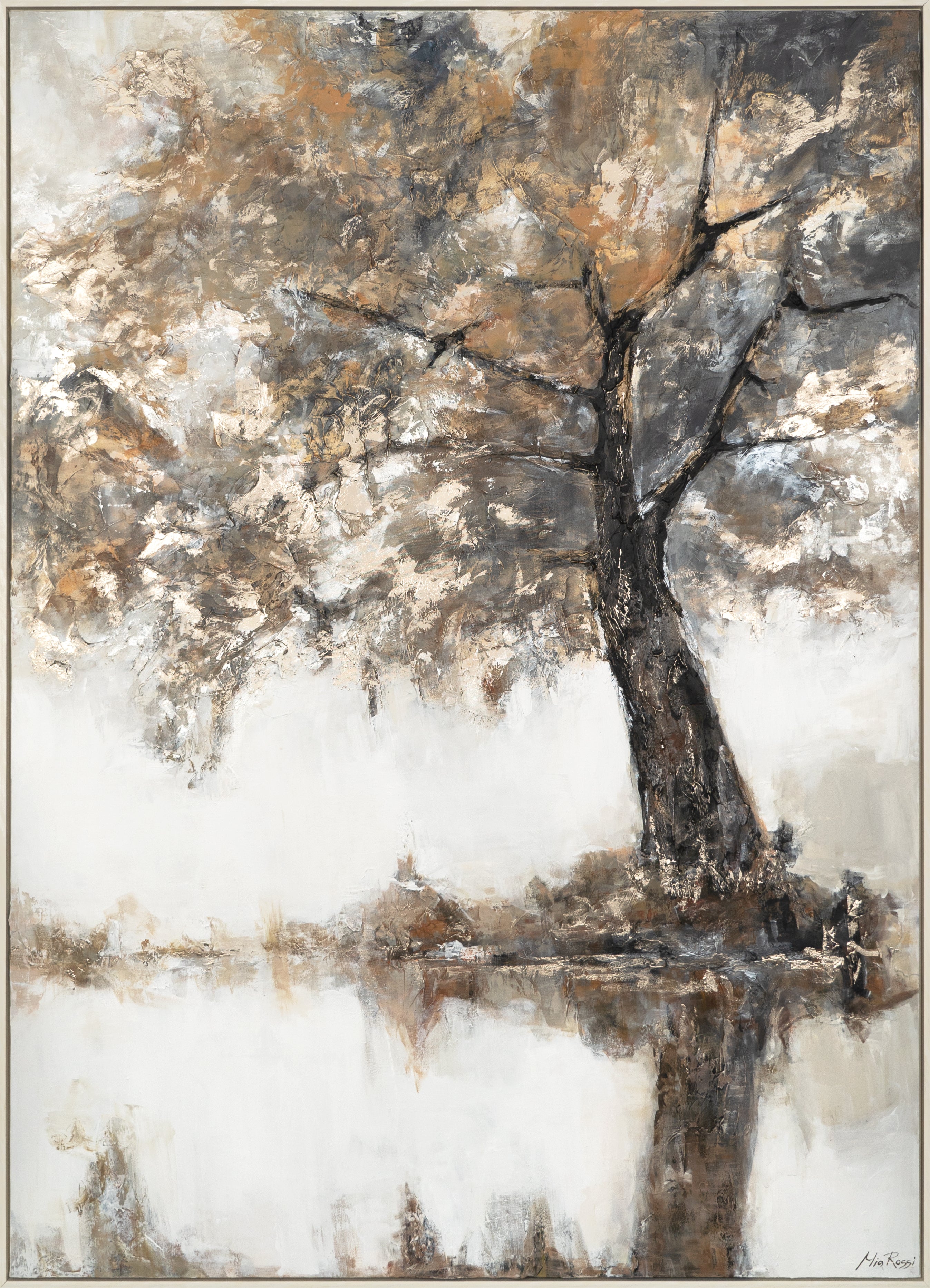Wandkunst mit Struktur „Lyrischer Baum“ – Ruhige Landschaft auf Leinwand