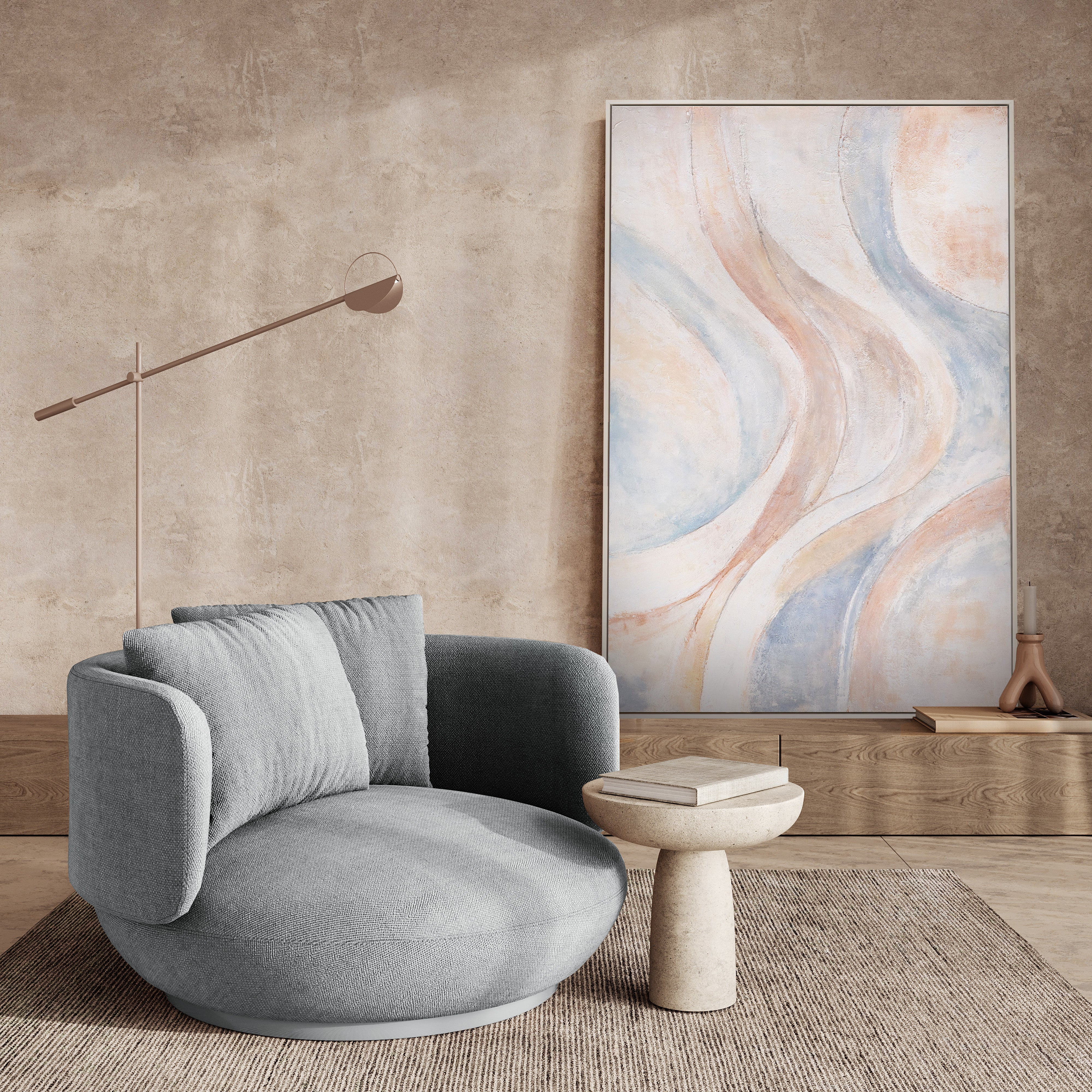 • Abstraktes Kunstbild mit weichen Farbverläufen in Beige und Grau