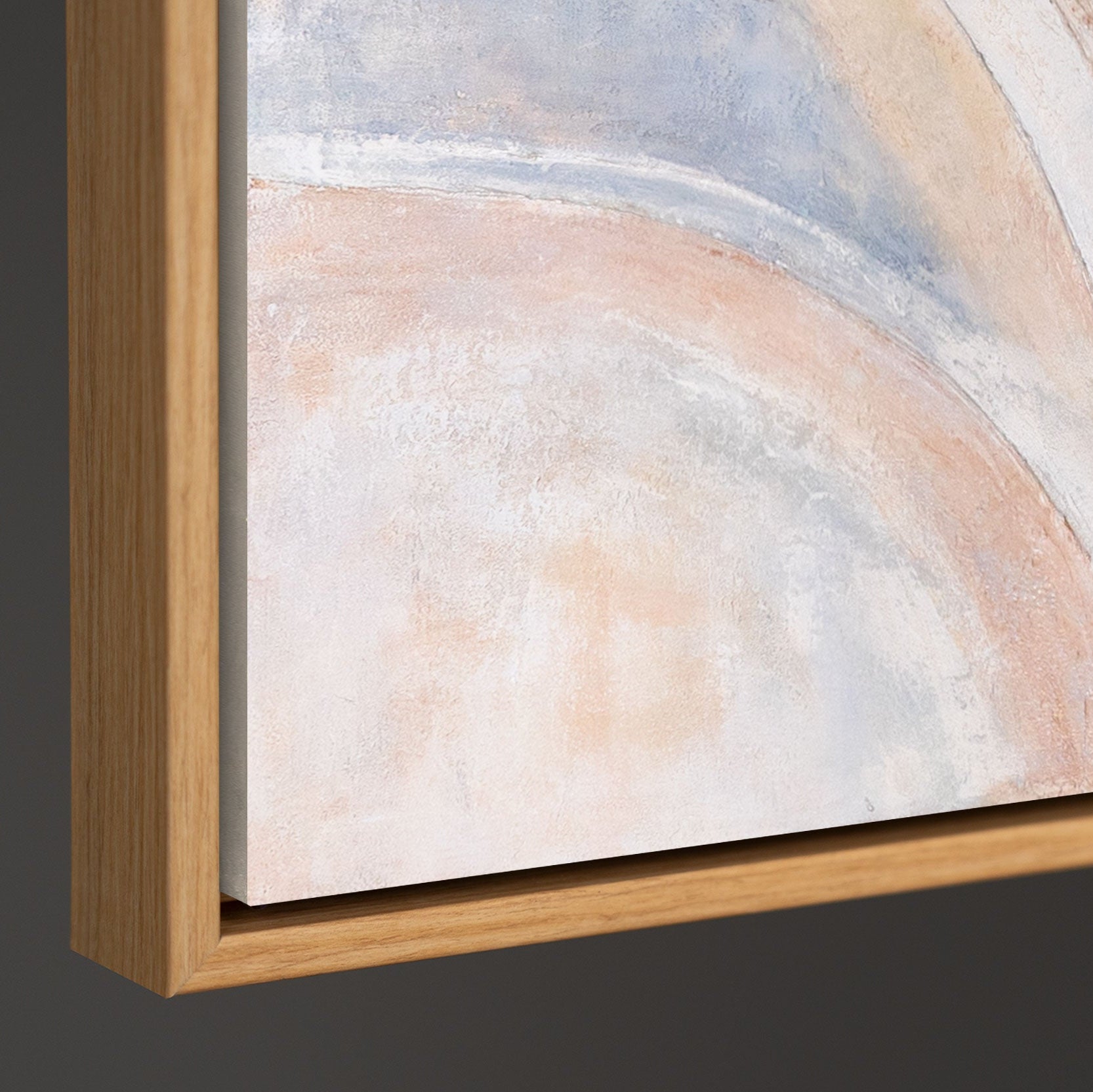 • Produktübersicht eines abstrakten Leinwandbildes in Pastellfarben mit Materialdetails