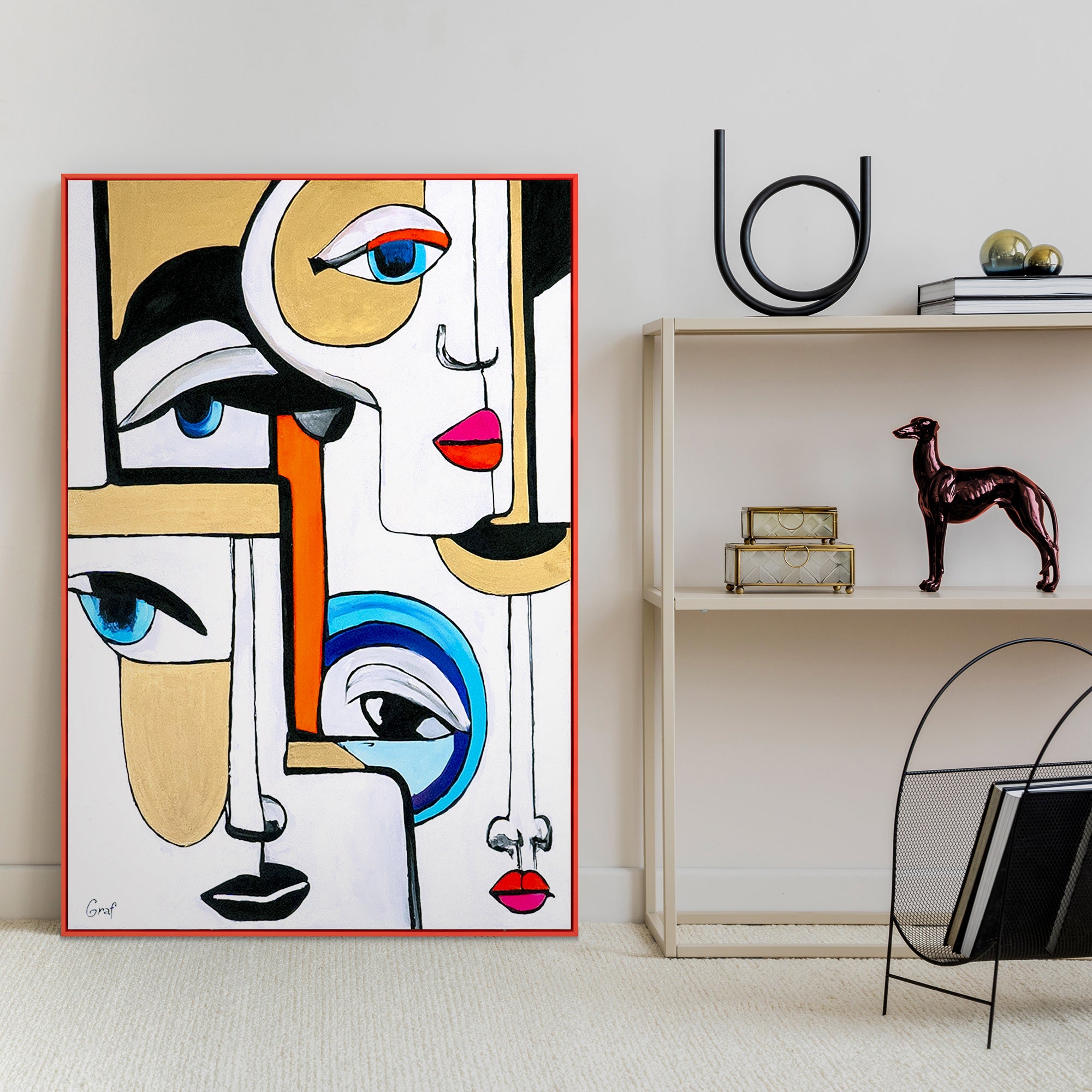 • Handgemalte acrylbilder auf leinwand mit Rahmen "Spiel der Geometrie"