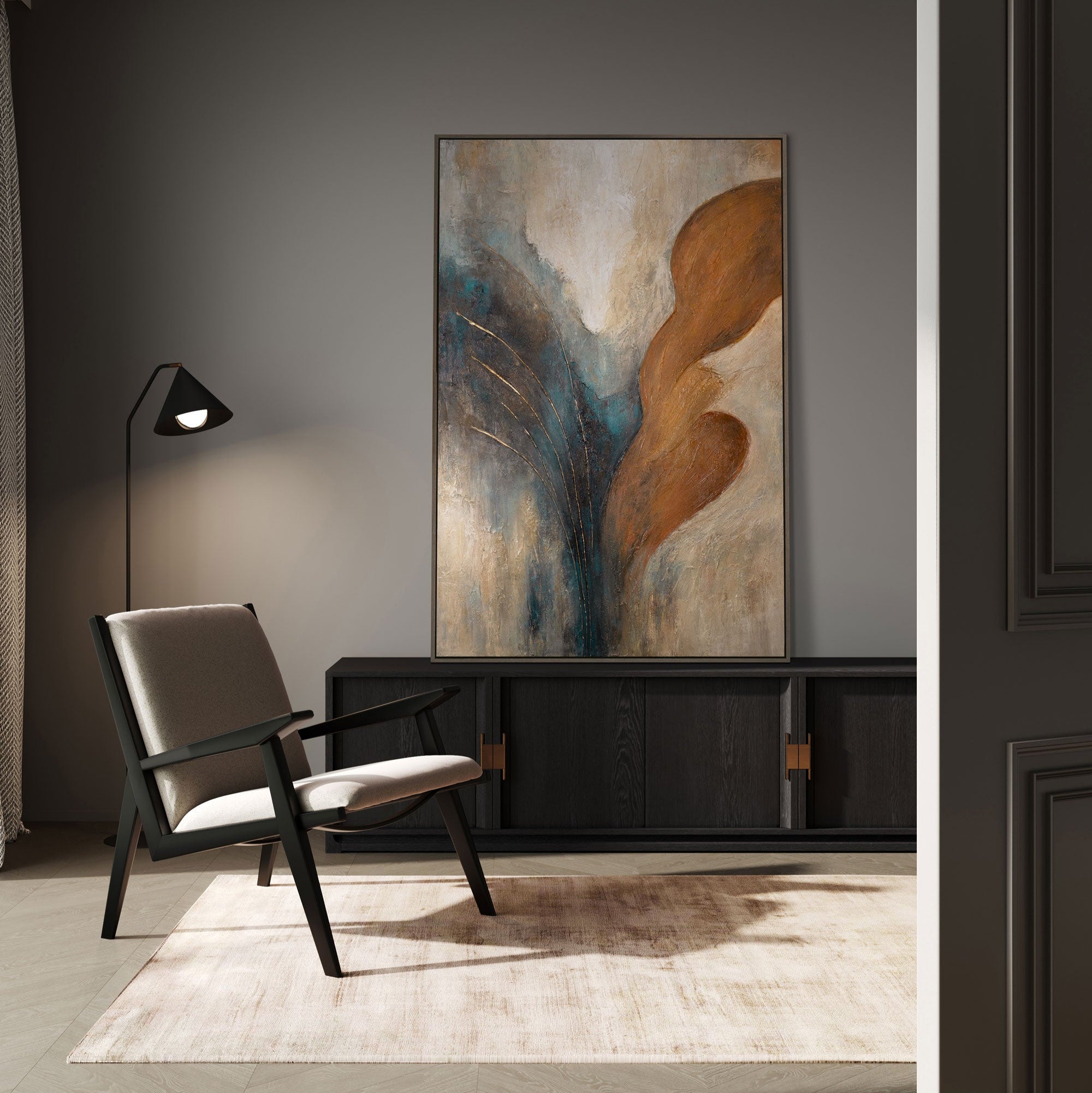 „Wind und Gold“ vereint Dynamik und Eleganz in einem Kunstwerk, das jedem Raum Tiefe und eine exklusive Atmosphäre verleiht.