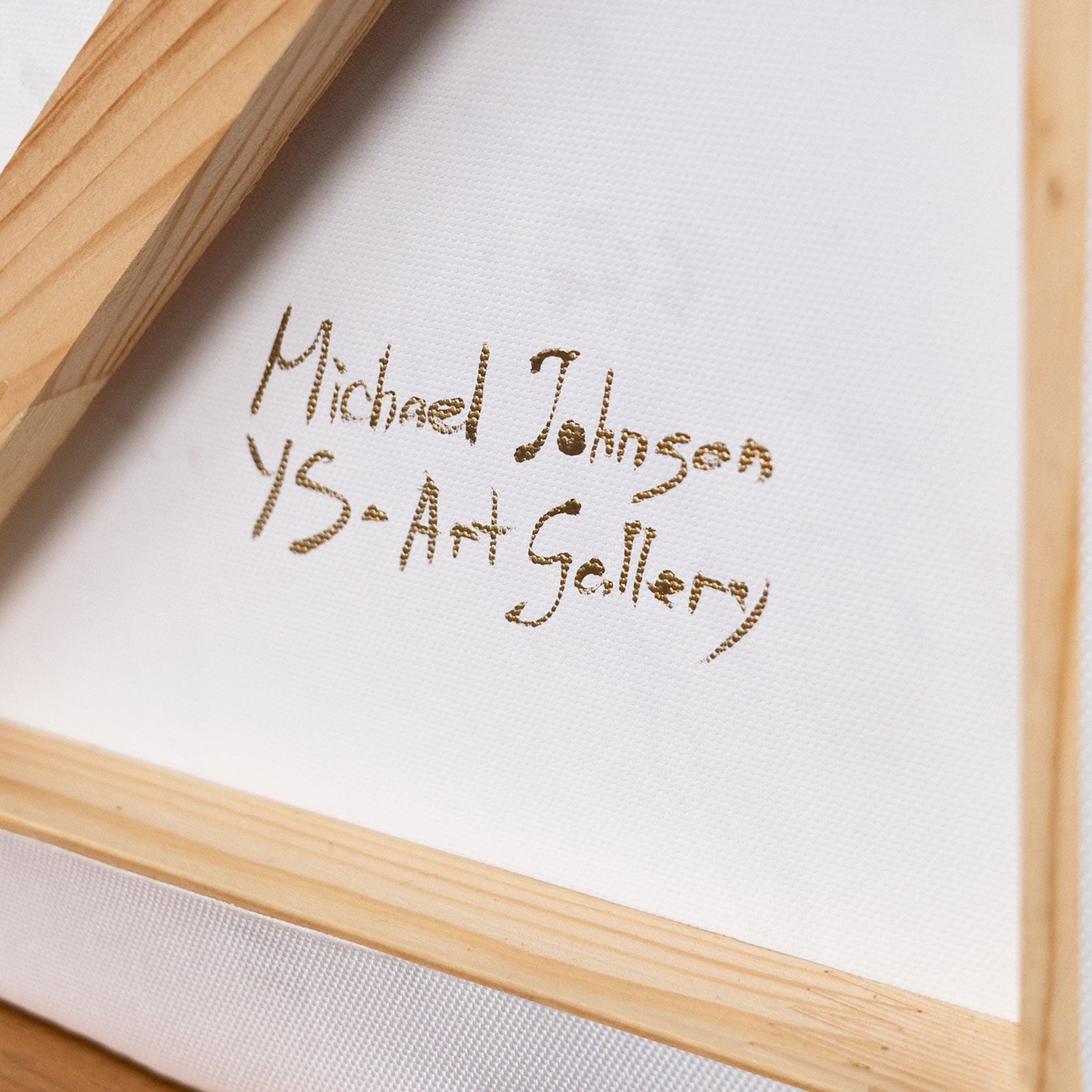 • Rückseite eines abstrakten Leinwandbildes mit Künstlerbeschriftung und Holzrahmen