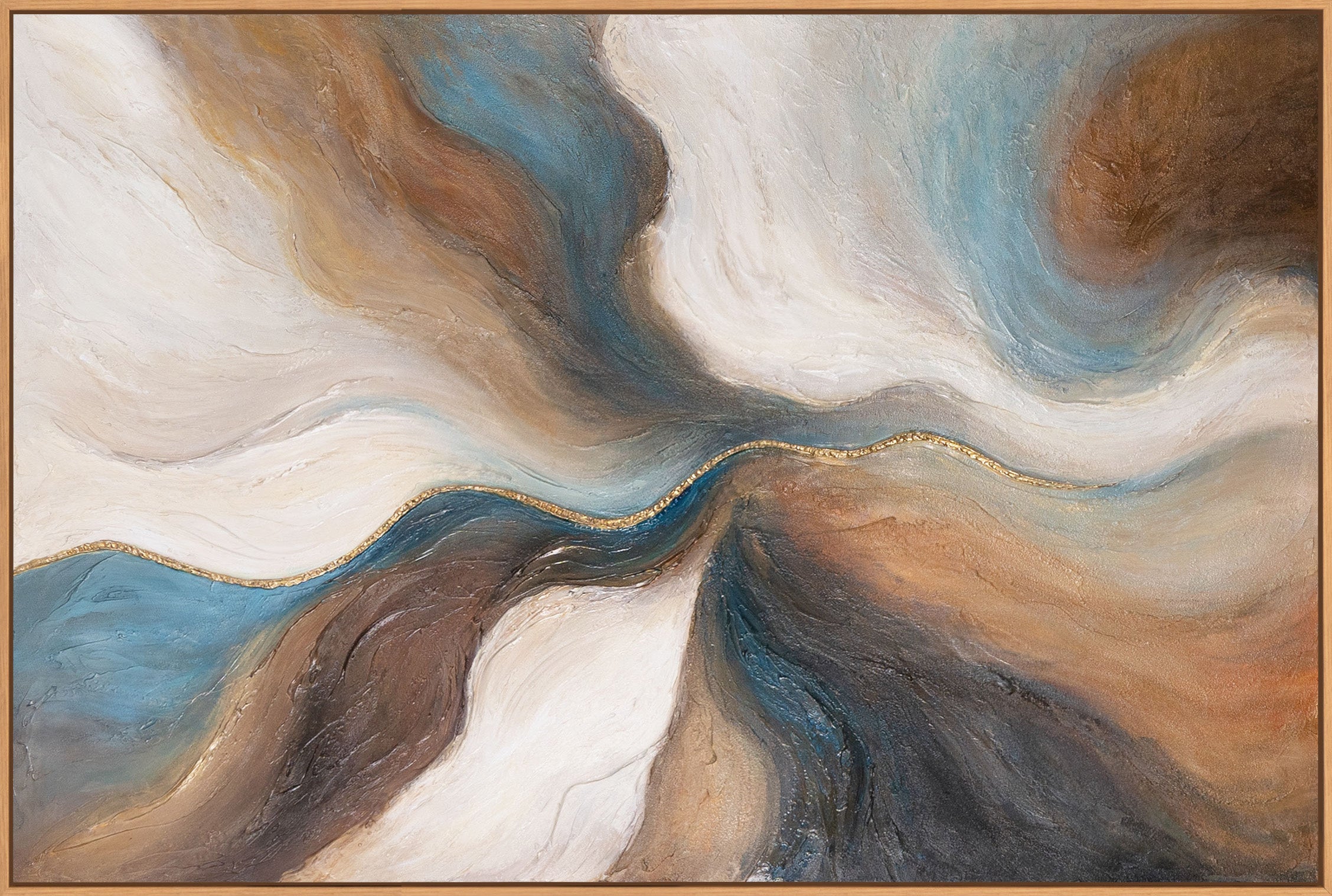 • Abstraktes Leinwandbild mit mineralischer Struktur in Braun, Beige und Blau