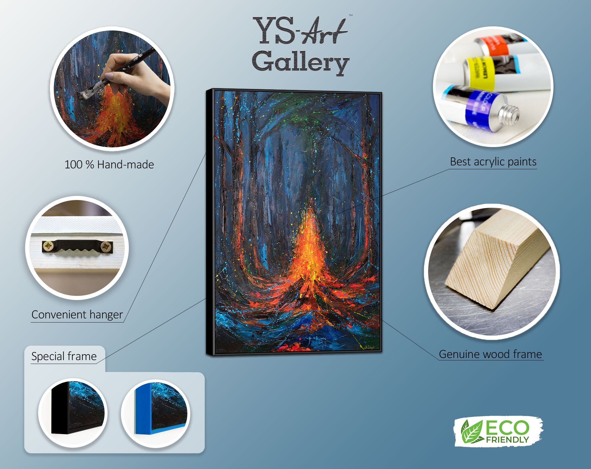 • Wandbild auf Leinwand mit Rahmen „Feuerfunken“ – handgemalte Nachtlandschaft