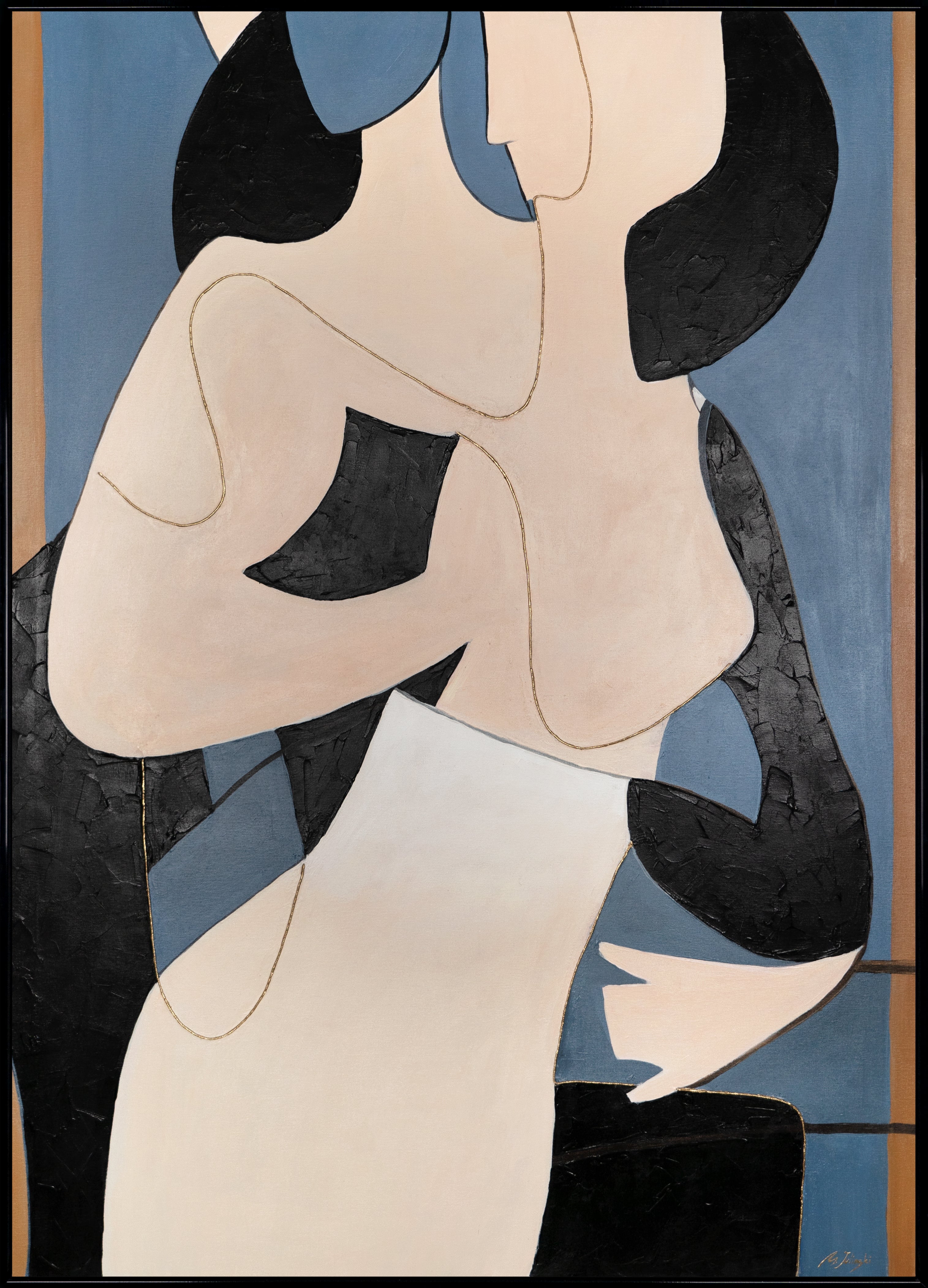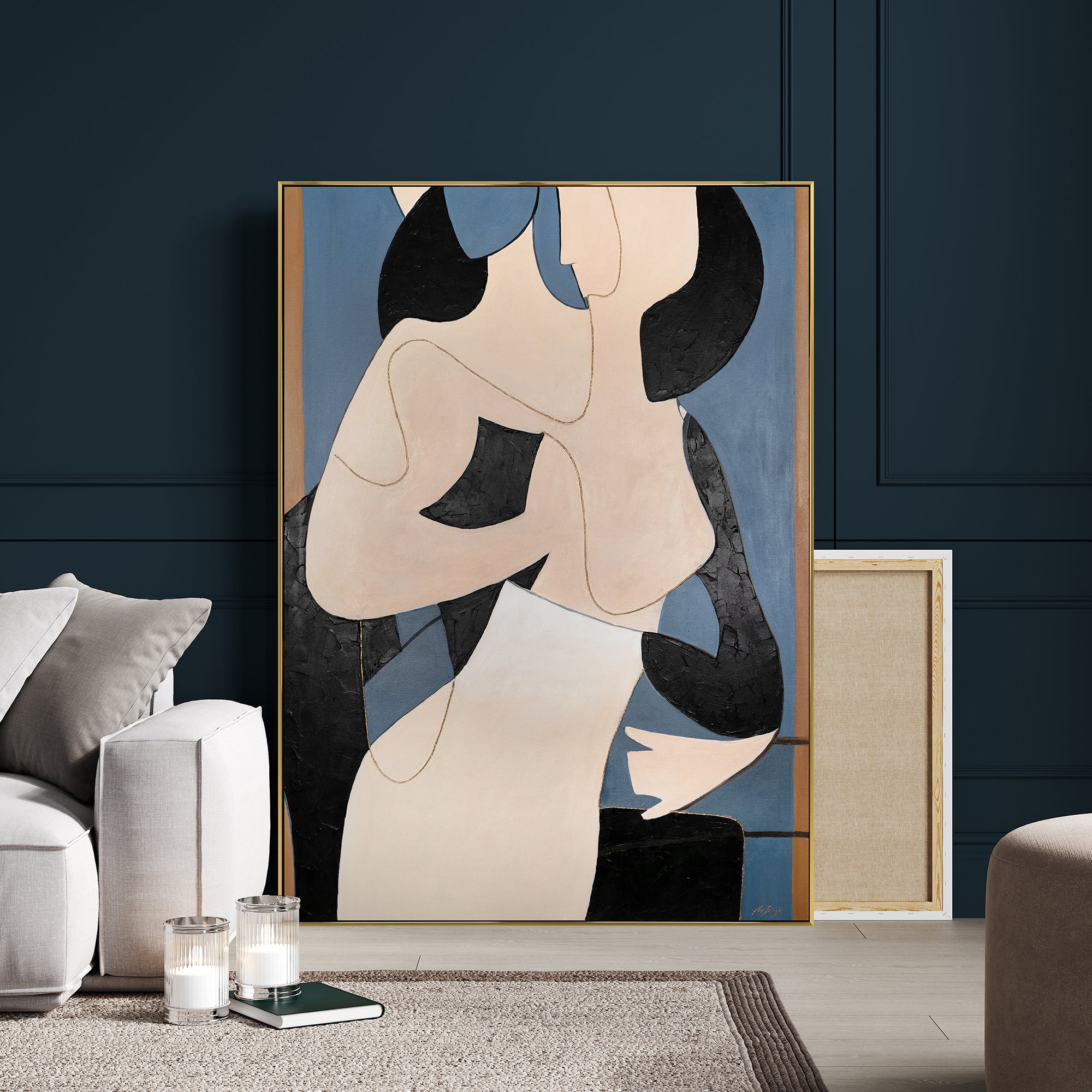 • Bilder mit Rahmen abstrakt Handgemaltes Kunstwerk mit zwei Figuren Gestreifte Symphonie