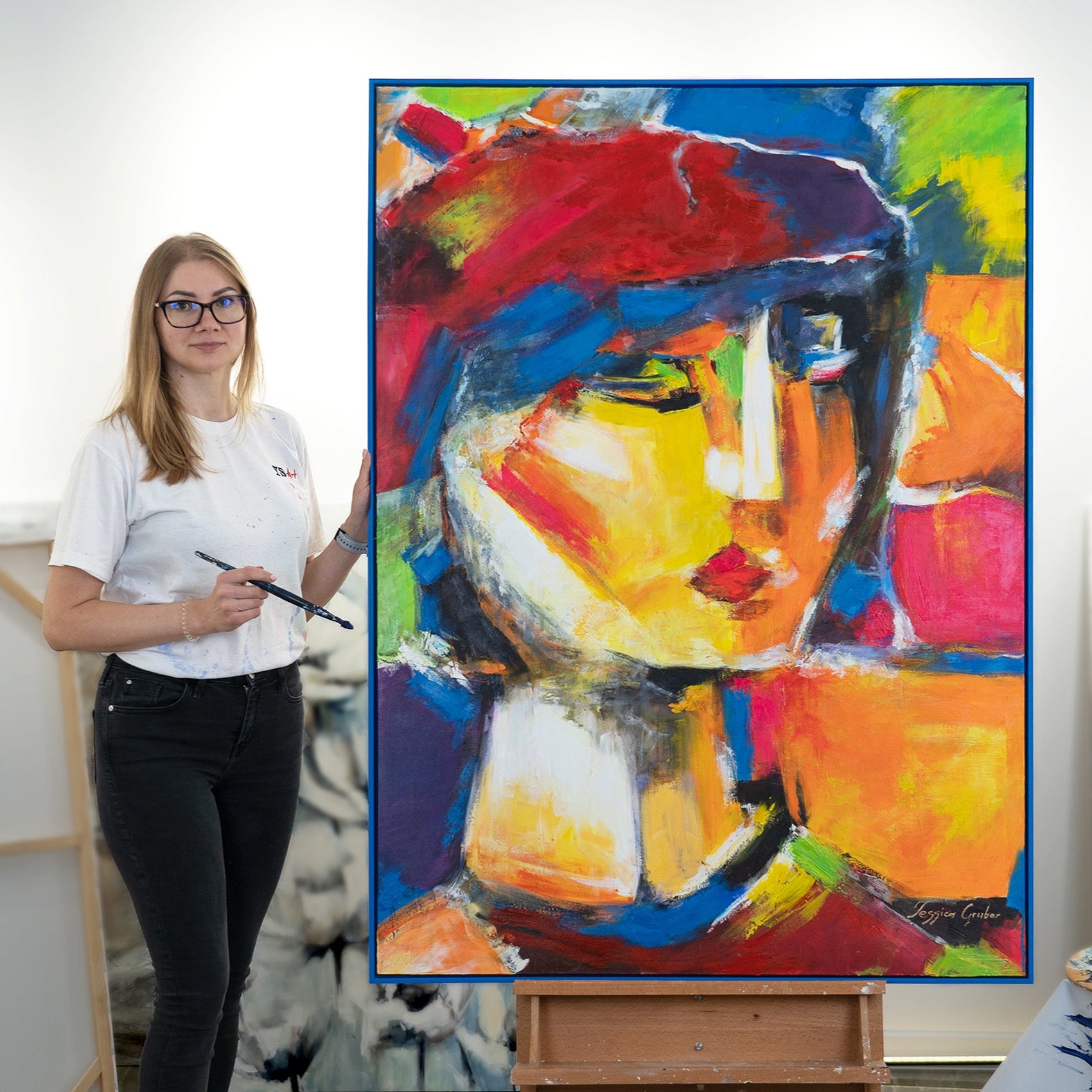 Gemälde mit Rahmen "Lebhaftes Outfit" lebhaftes Porträt