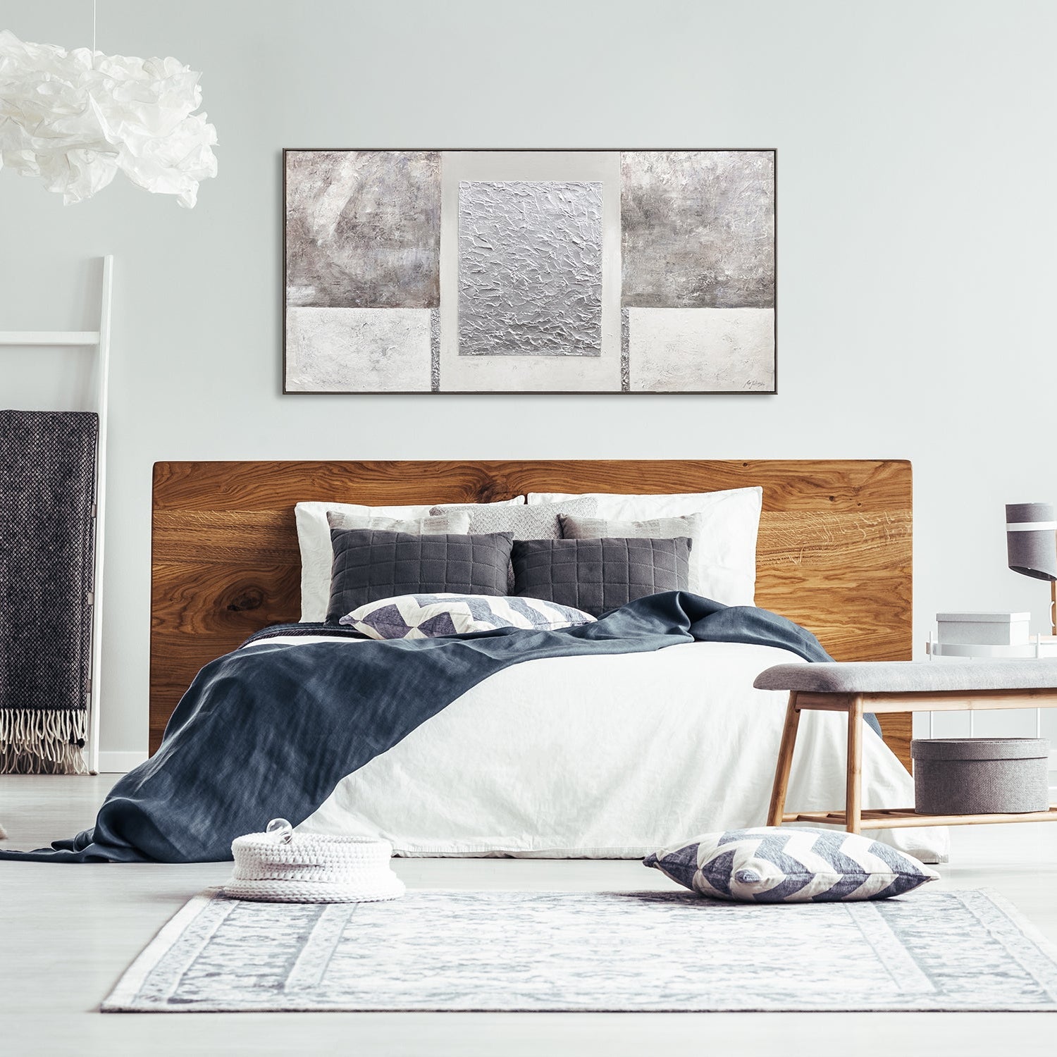 • Moderne Wandkunst Grau Weiss Acrylbild über Bett Dekor