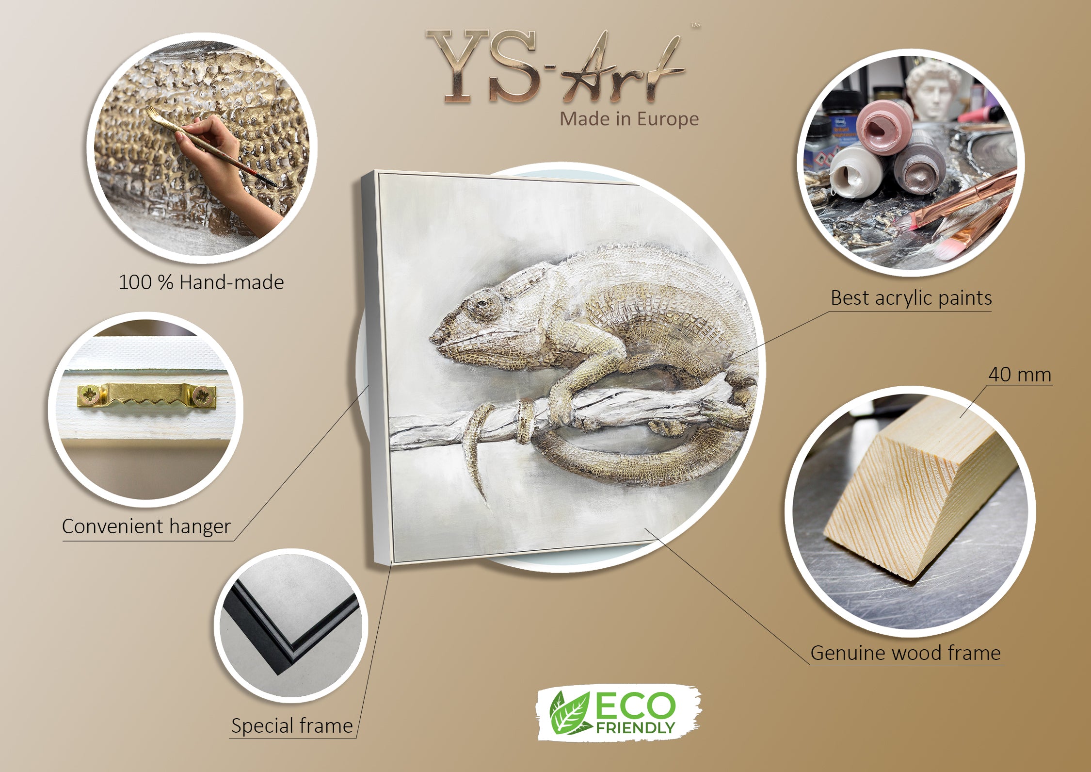• Handgemaltes Leinwandbild Chamäleon Beige Grau Wandkunst