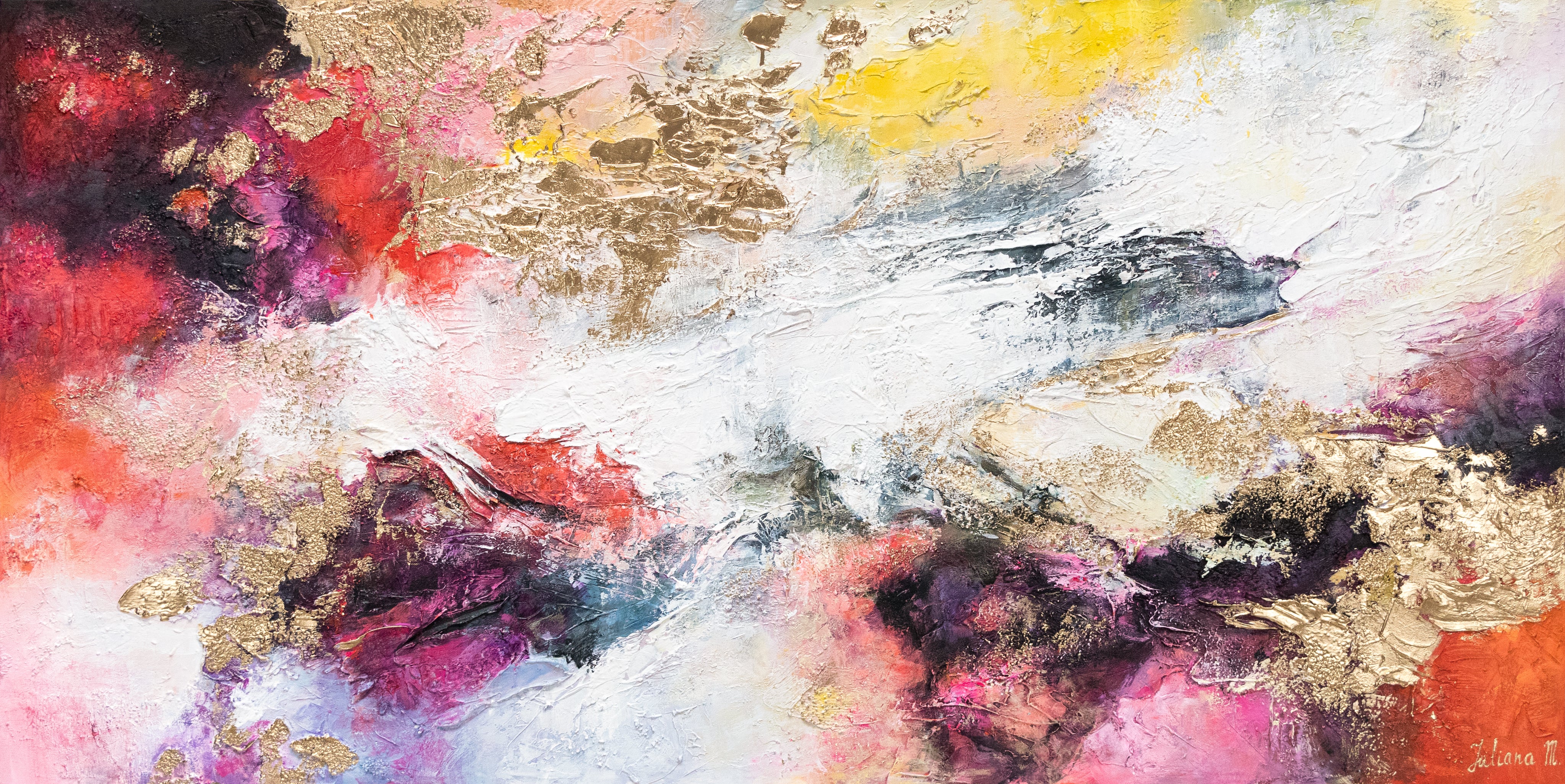 Tauchen Sie ein in die Farbenpracht dieses handgemalten abstrakten Gemäldes. Die intensiven Farbtöne und einzigartigen Texturen bringen Leben und Energie in jeden Raum. Dieses Kunstwerk ist vollständig handgefertigt und somit ein einzigartiges Unikat. Wir bieten Ihnen eine kostenlose Lieferung direkt zu Ihnen nach Hause.