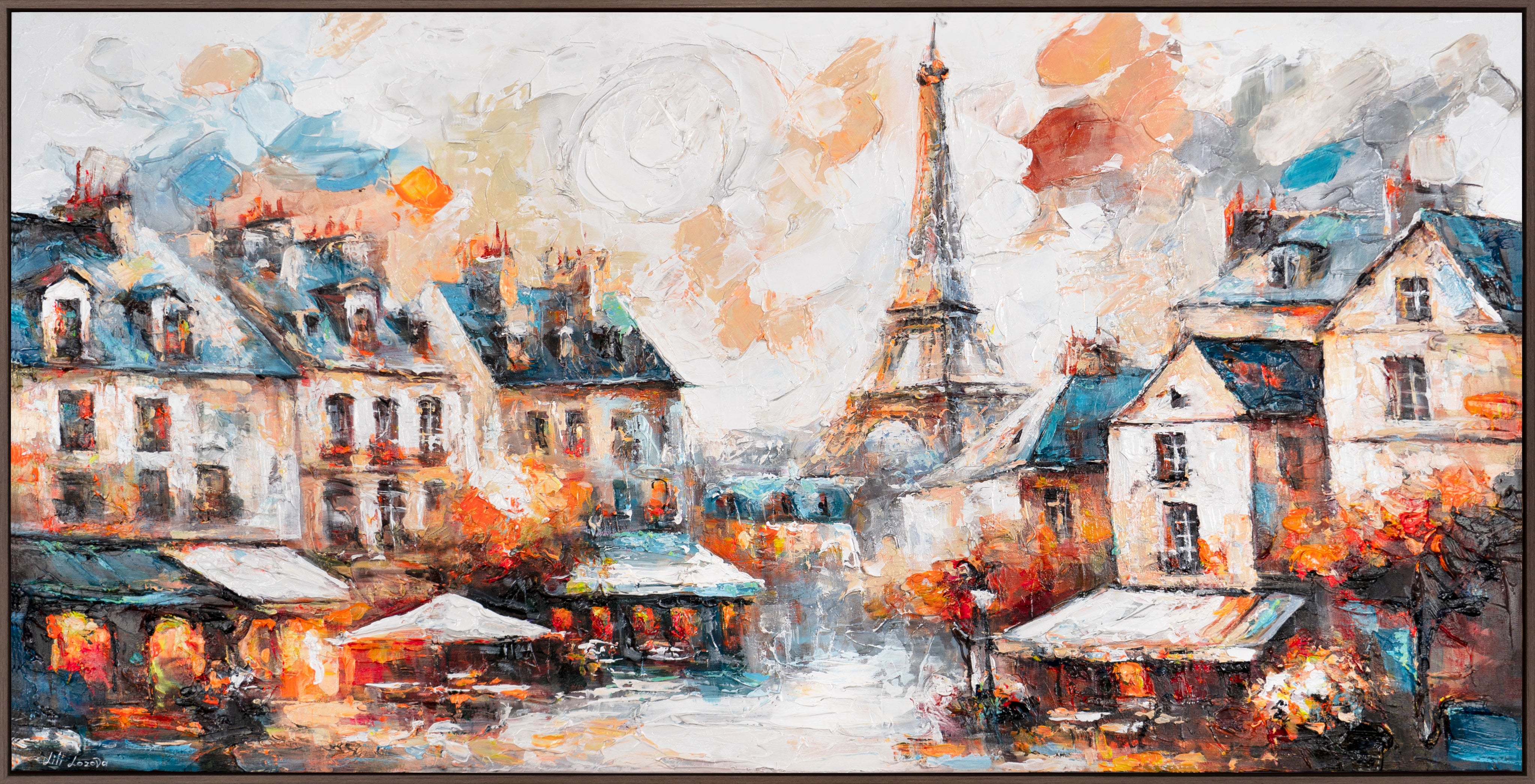 Diese faszinierende Leinwand zeigt eine lebendige, handgemalte Pariser Straßenszene in sanften, warmen Tönen. Das Bild fängt das Flair und die Gemütlichkeit der Stadt mit impressionistischen Pinselstrichen und harmonischer Farbkomposition ein. Detailreiche Fassaden und das sanfte Licht verleihen der Szene eine einladende Stimmung, die zum Verweilen einlädt.