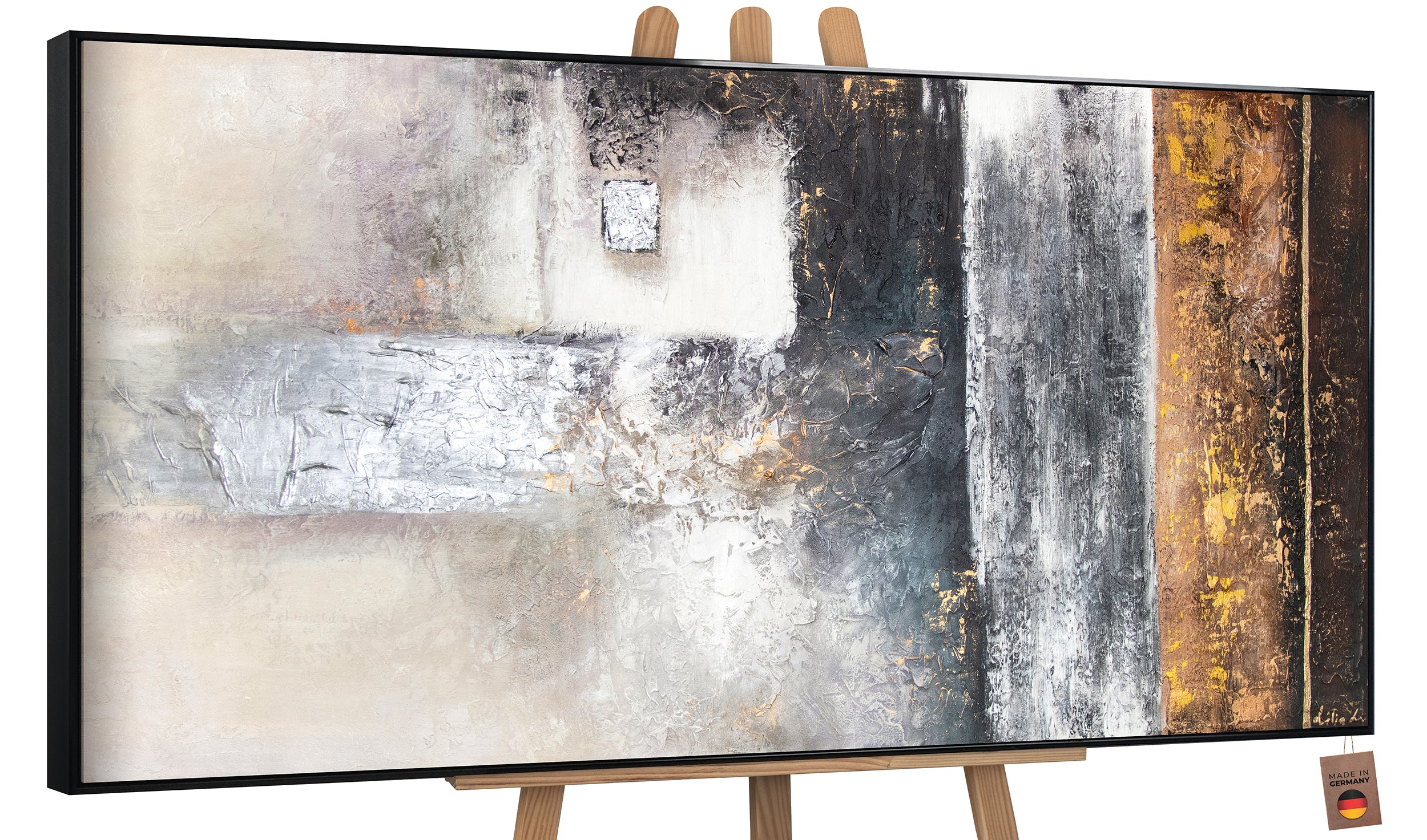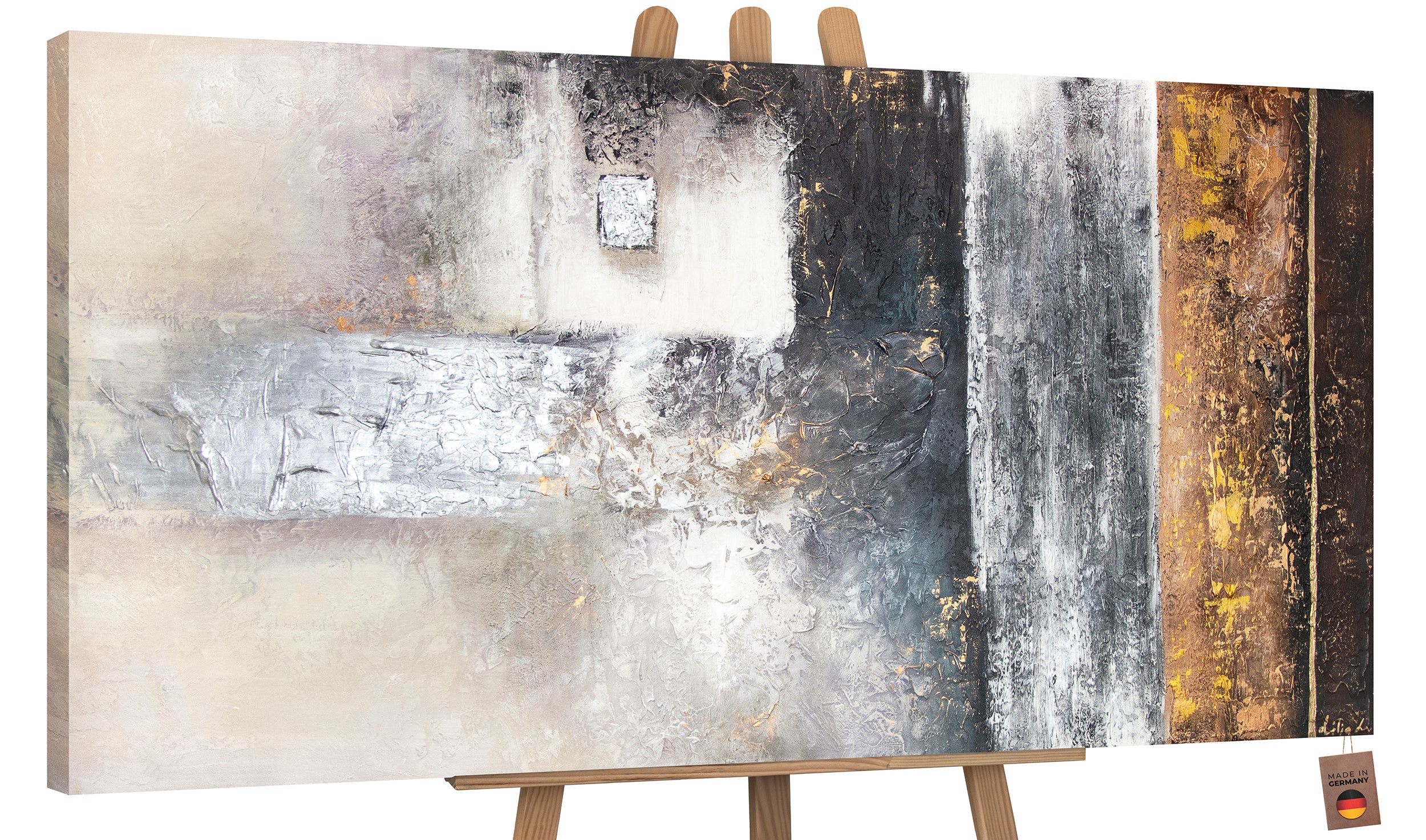 • Strukturierte Acrylmalerei Grau Gold Wandkunst