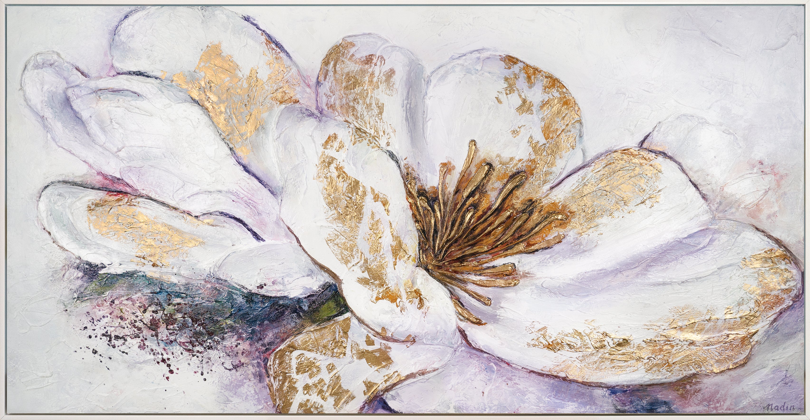 • Blumen Bilder Gemalt "Goldene Pfingstrose" Leinwand für Großartige Wanddeko