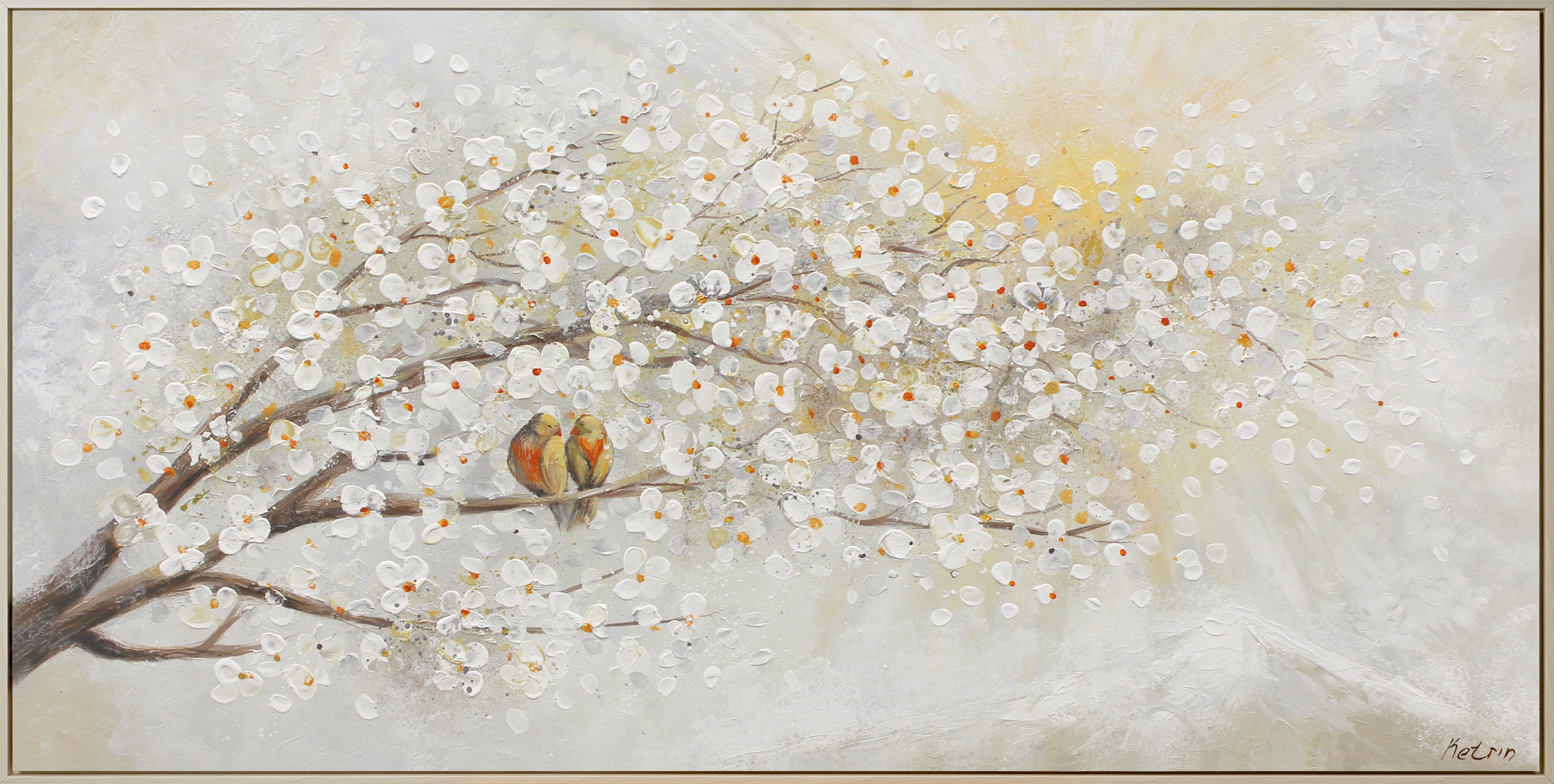 Dieses Gemälde, das unser Künstler in solchen warmen und angenehmen Farben gemalt hat, wird eine perfekte Ergänzung für Ihr Interieur sein. Des Weiteren sind handgemalte Gemälde ein perfektes Geschenk für die Liebsten, da blühende Bäume ein Symbol für Familienglück und weibliche Schönheit sind.