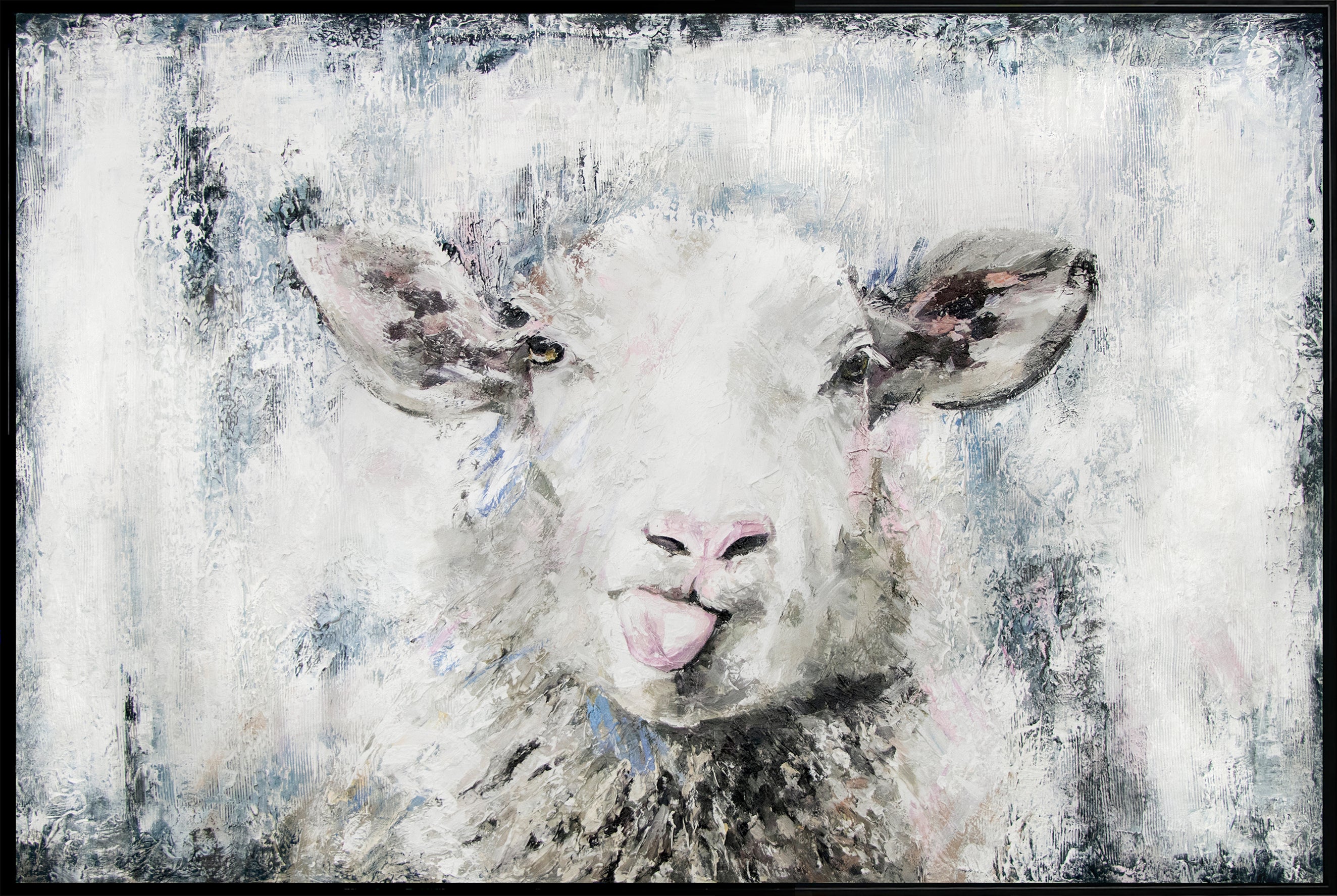 • Gemälde Tiere "Glückliches Schaf" mit Rahmen Acrylbilder