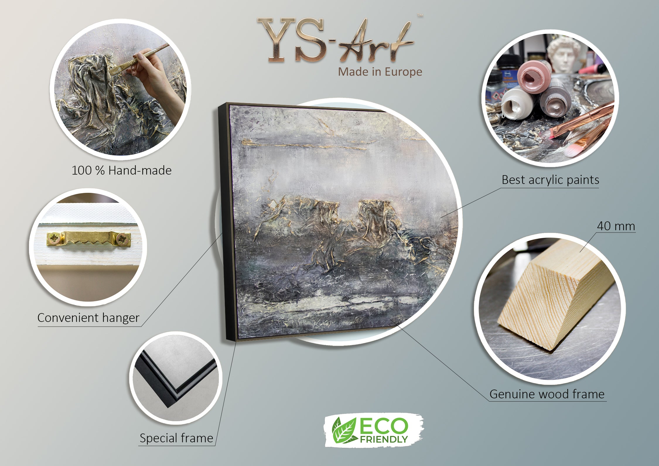 - Materialien: Acryl, Leinwand, Keilrahmen aus Naturholz.