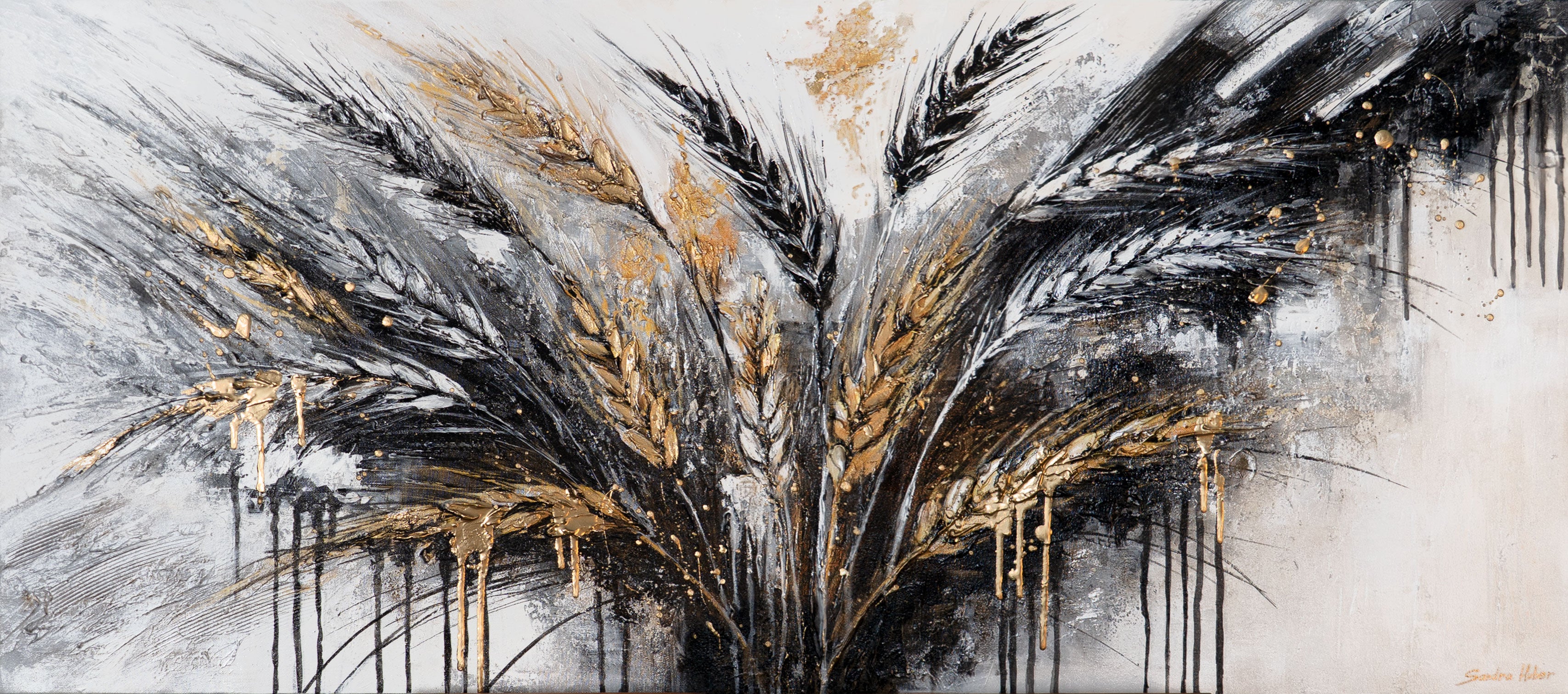 • Handgemaltes Acrylbild auf Leinwand mit Ährenmotiv in Gold "Stacheln" 115x50cm