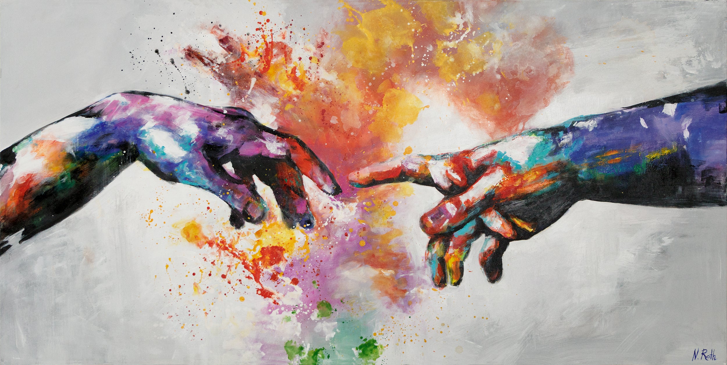 Moderne Abstrakte Kunst: Handgemalte Bilder auf Leinwand "Galaktisch"