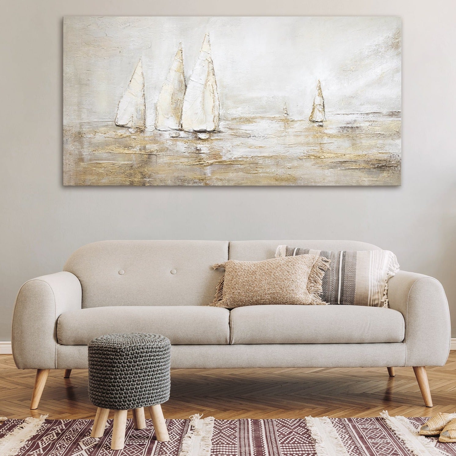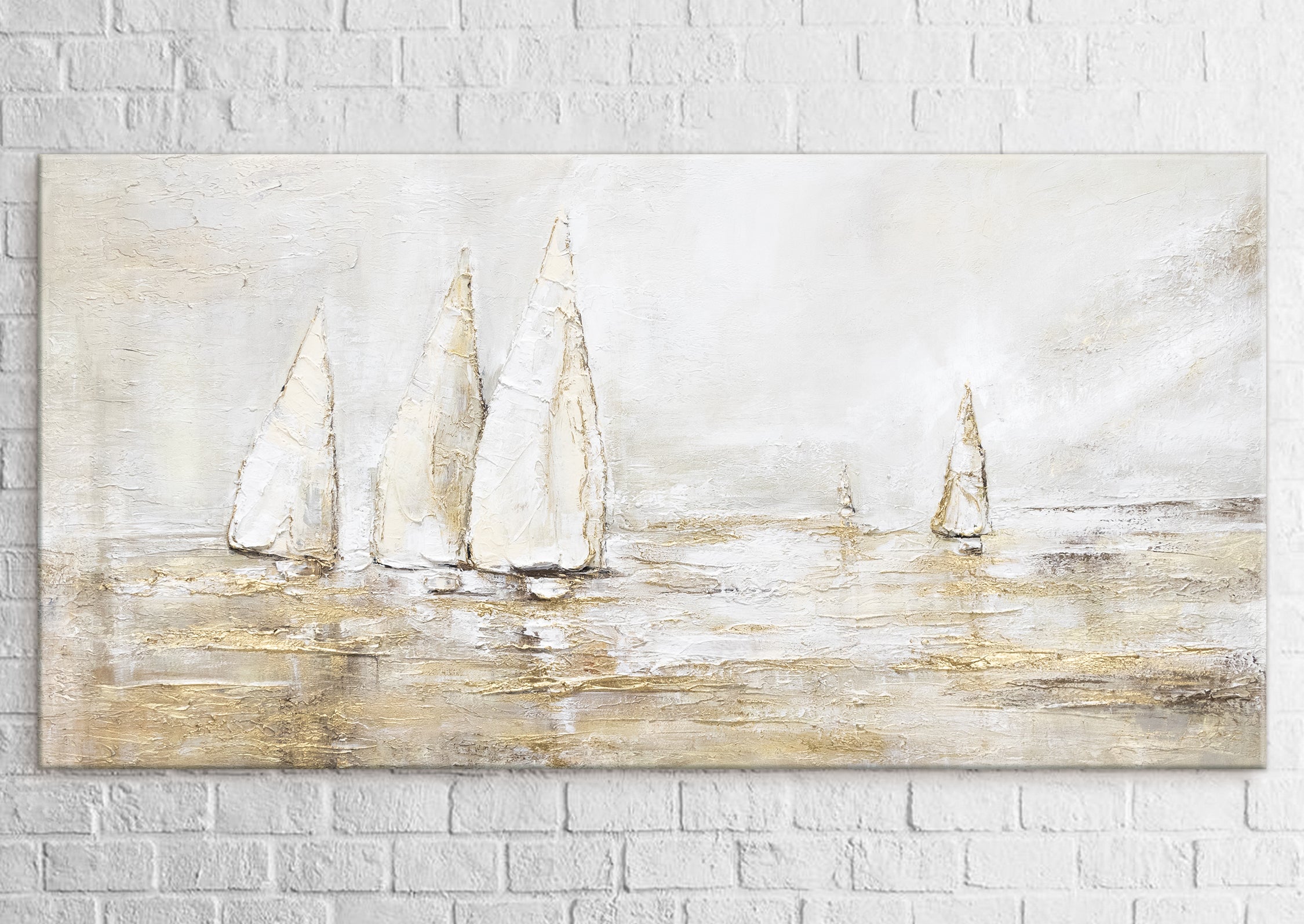 Tauchen Sie ein in die Welt der maritimen Kunst mit diesem handgemalten Segelboot-Gemälde. Die zarten, harmonischen Farben und die feinen Details schaffen eine friedliche und elegante Atmosphäre in jedem Raum. Jedes Detail dieses Kunstwerks ist 100% handgefertigt, was es zu einem einzigartigen Unikat macht. Das Gemälde wird mit kostenloser Lieferung direkt zu Ihnen nach Hause geliefert.