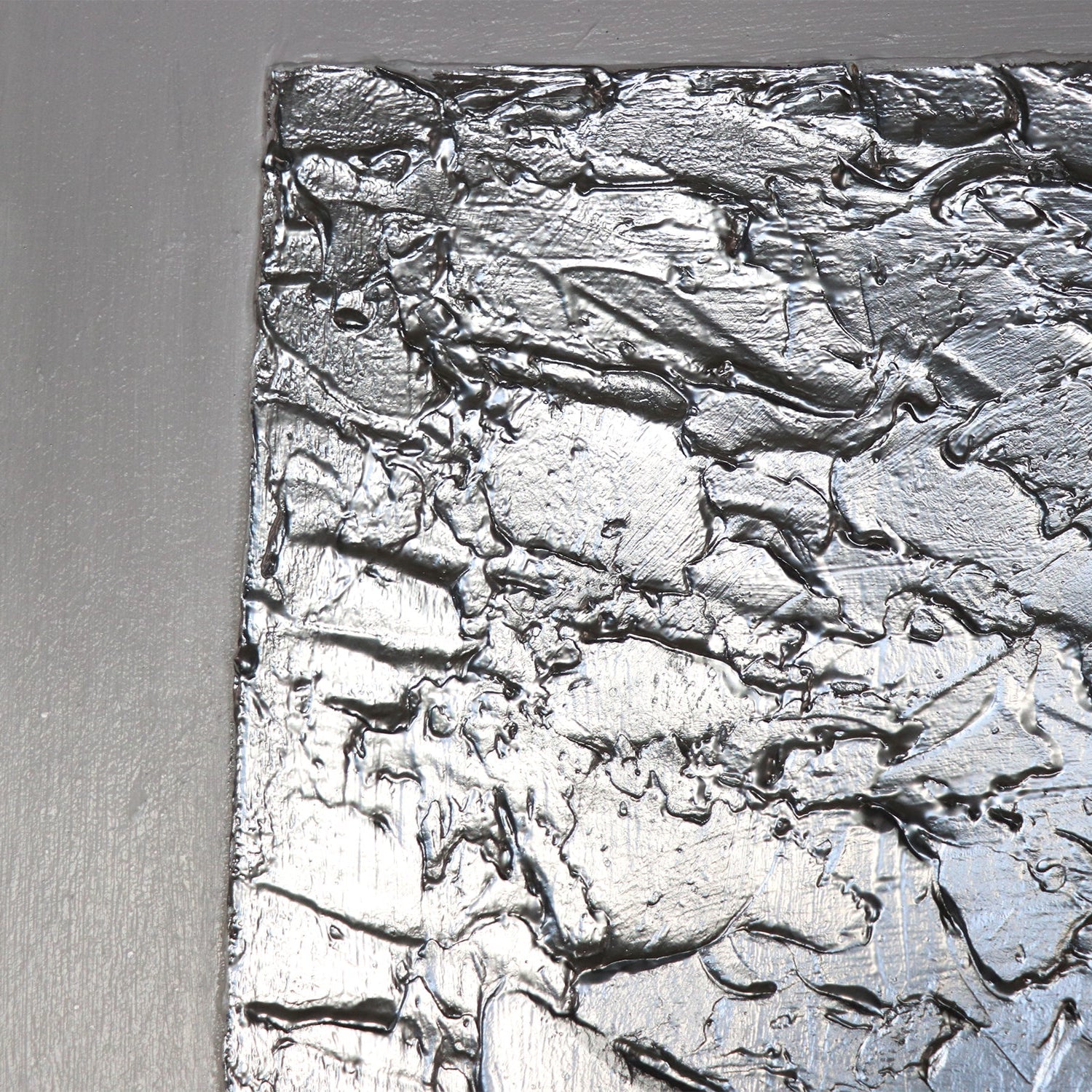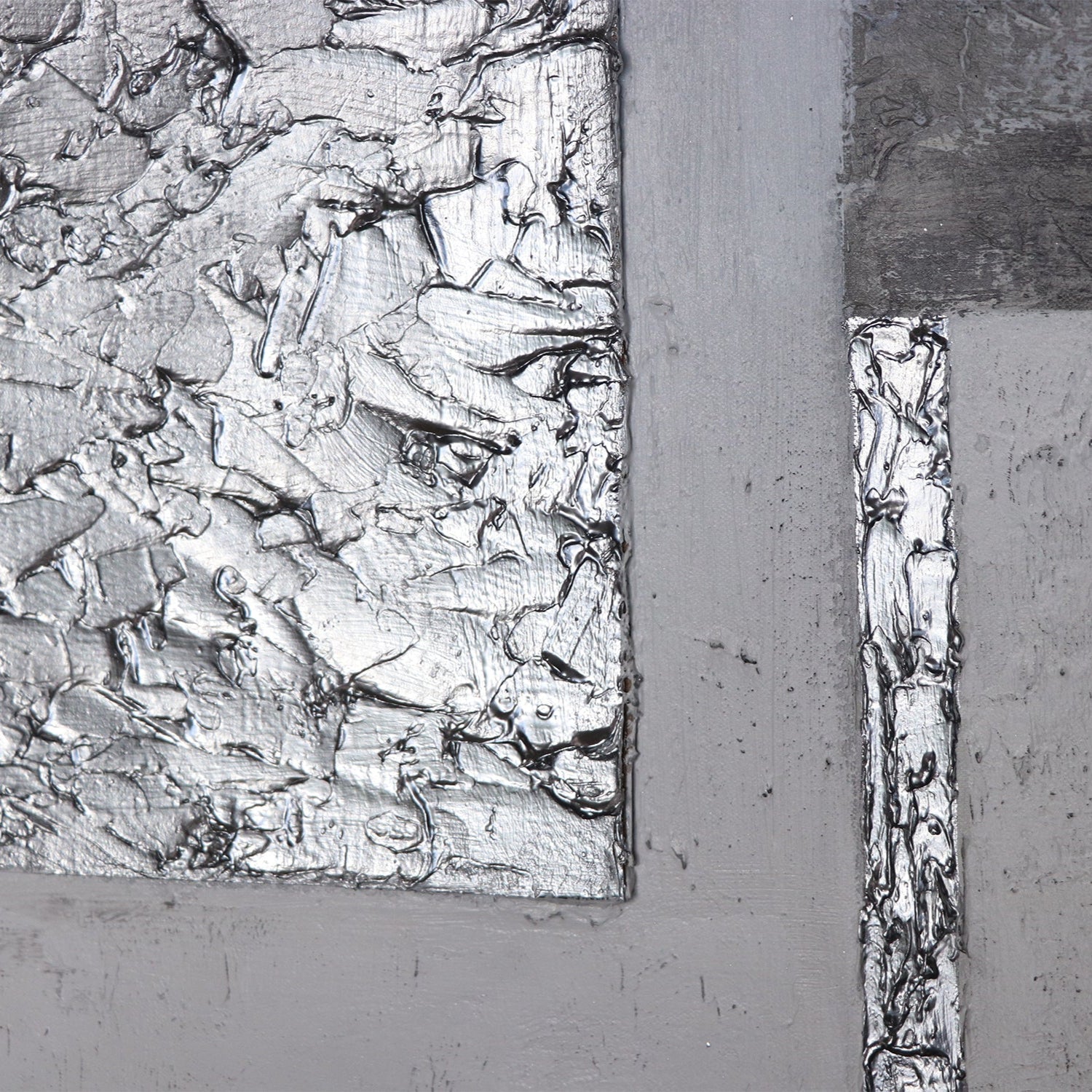 • Detail des zentralen silbernen Rechtecks mit Relieftextur