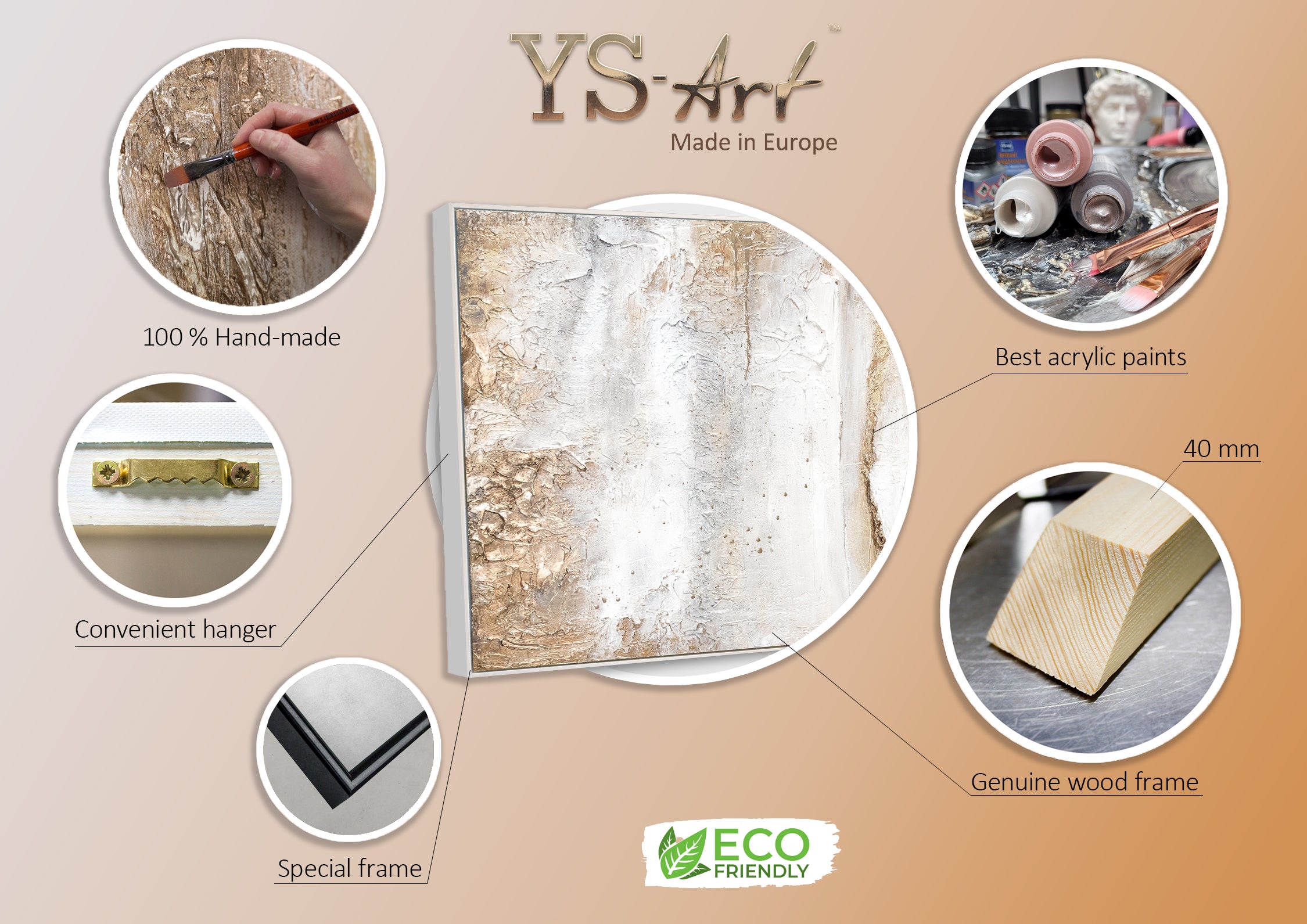• Handgemaltes Wandbild Acryl Relief Weiß Gold