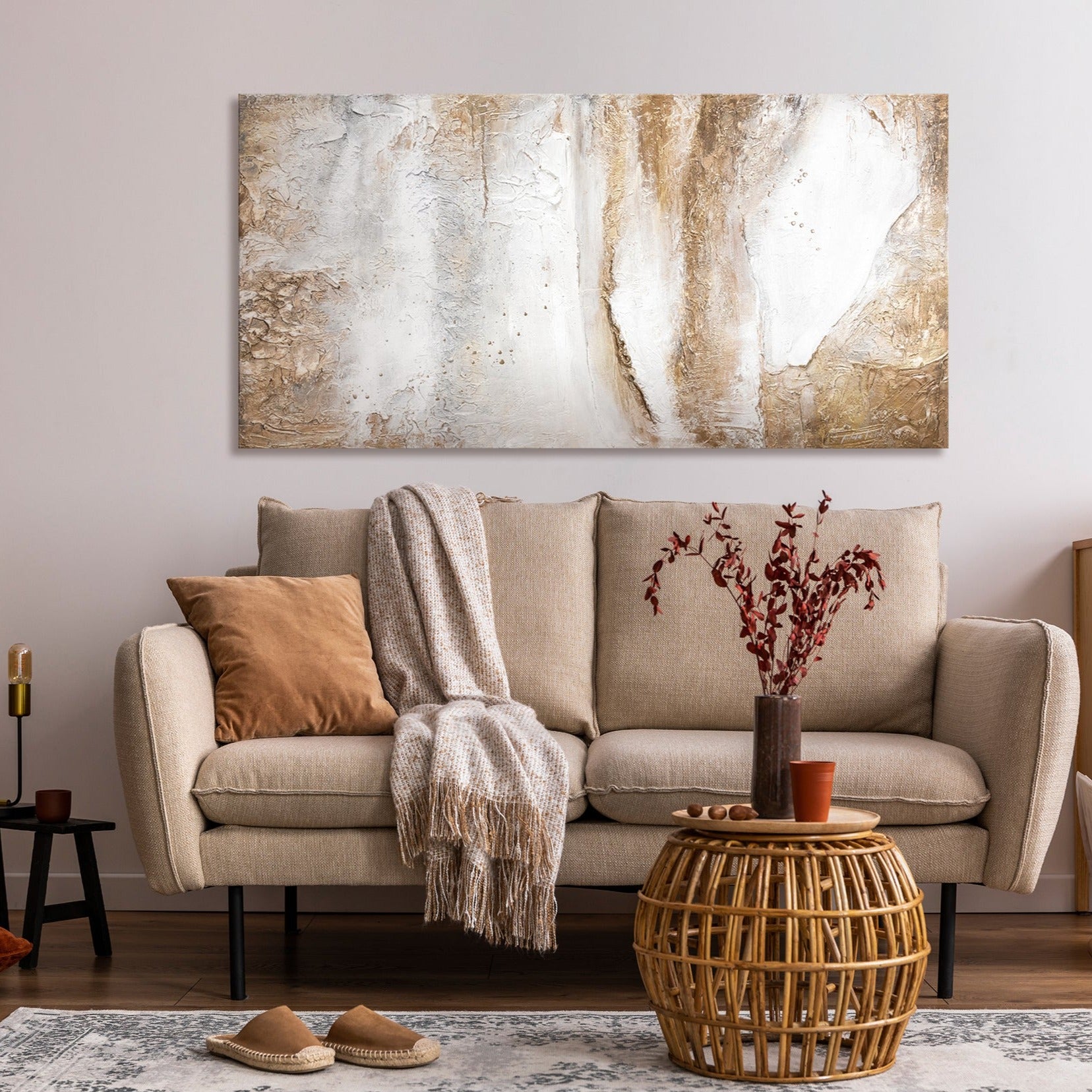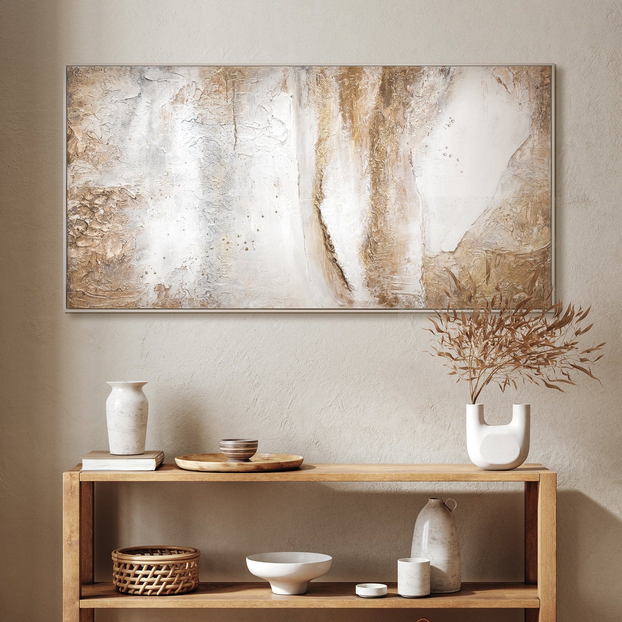 • Abstraktes Acrylbild Struktur Wanddeko Gold Beige