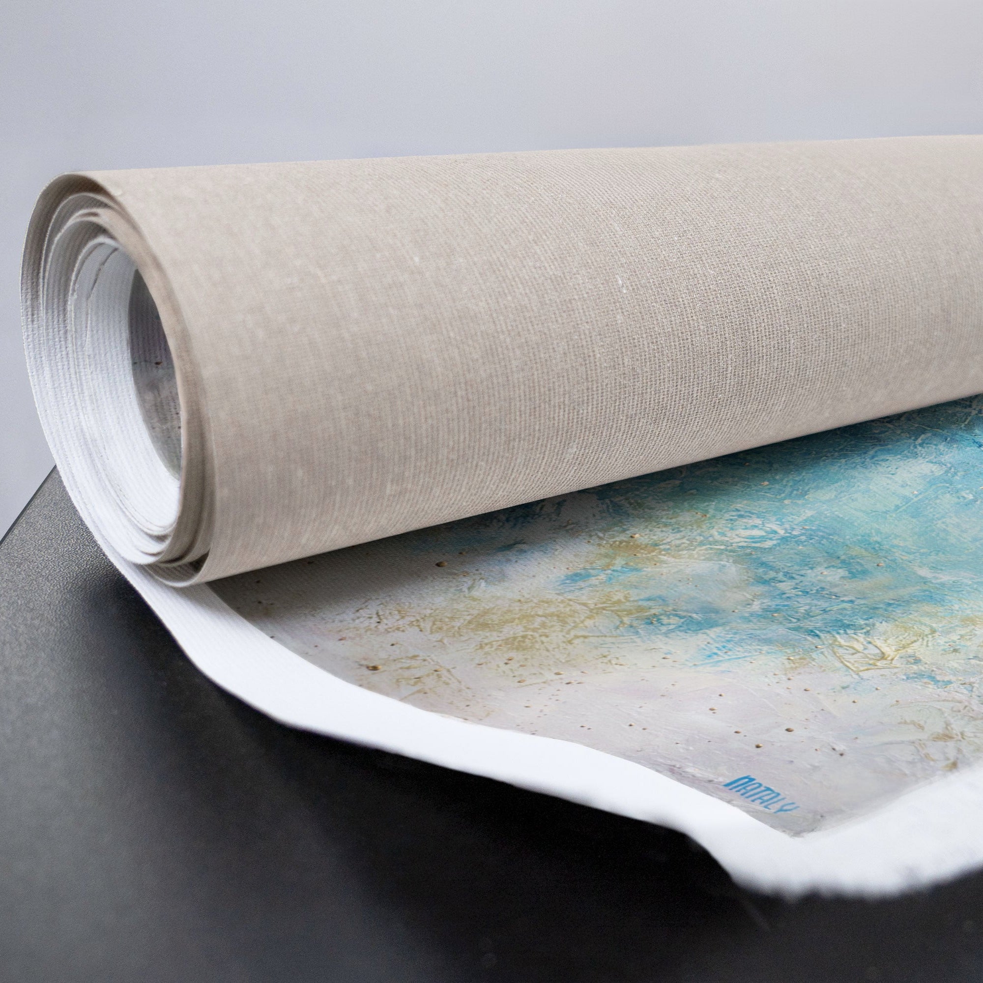 • gerollte Leinwand mit türkis-violettem Farbverlauf