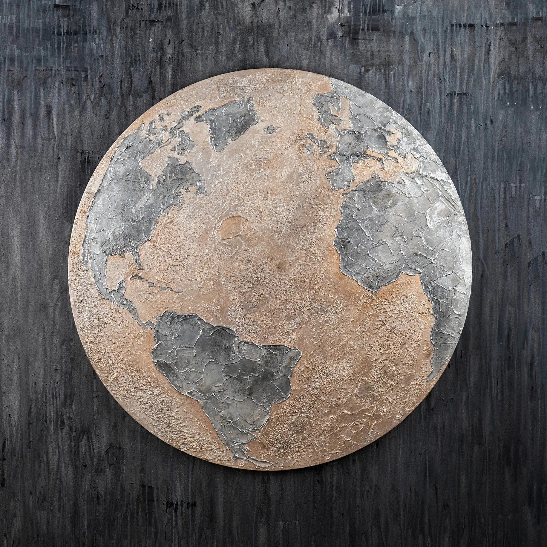 Nachtlicht Acryl Gemälde in Planetform "Silberner Planet" Abstrakte Kunst