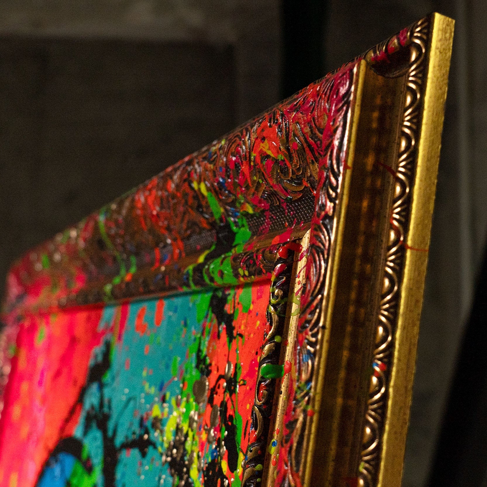 Dieses farbenfrohe Leinwandbild ist ein echtes Statement: Ein Pop-Art-Entchen mit ikonischer Sonnenbrille in leuchtenden Farben, umgeben von energiegeladenen Spritzern. Jeder Pinselstrich ist handgemalt und macht das Werk zu einem absoluten Unikat – voller Humor, Mut und urbanem Lifestyle.