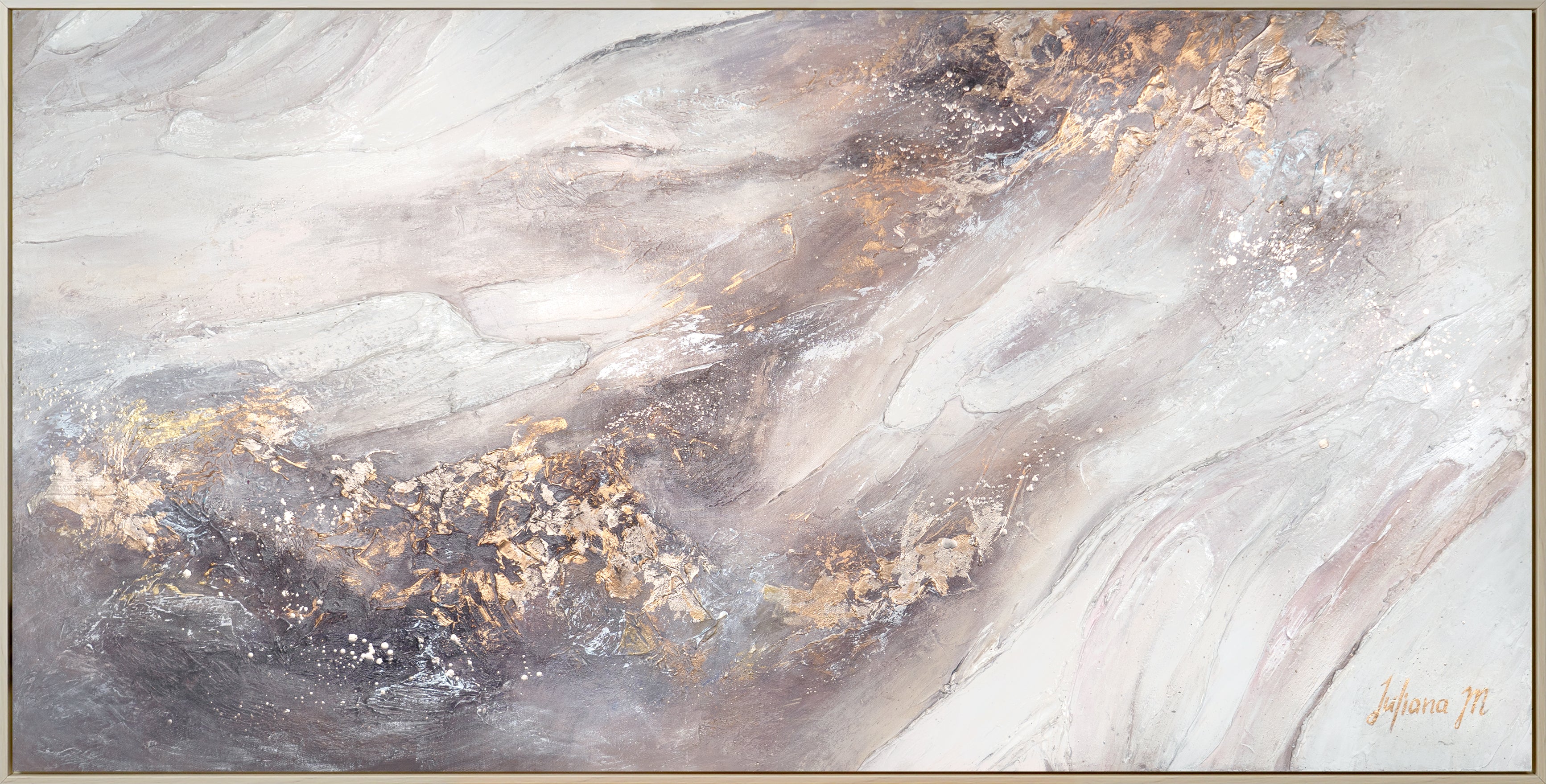 Abstraktes Acrylgemälde auf Leinwand mit goldenen Akzenten - "Stürmische Schönheit"