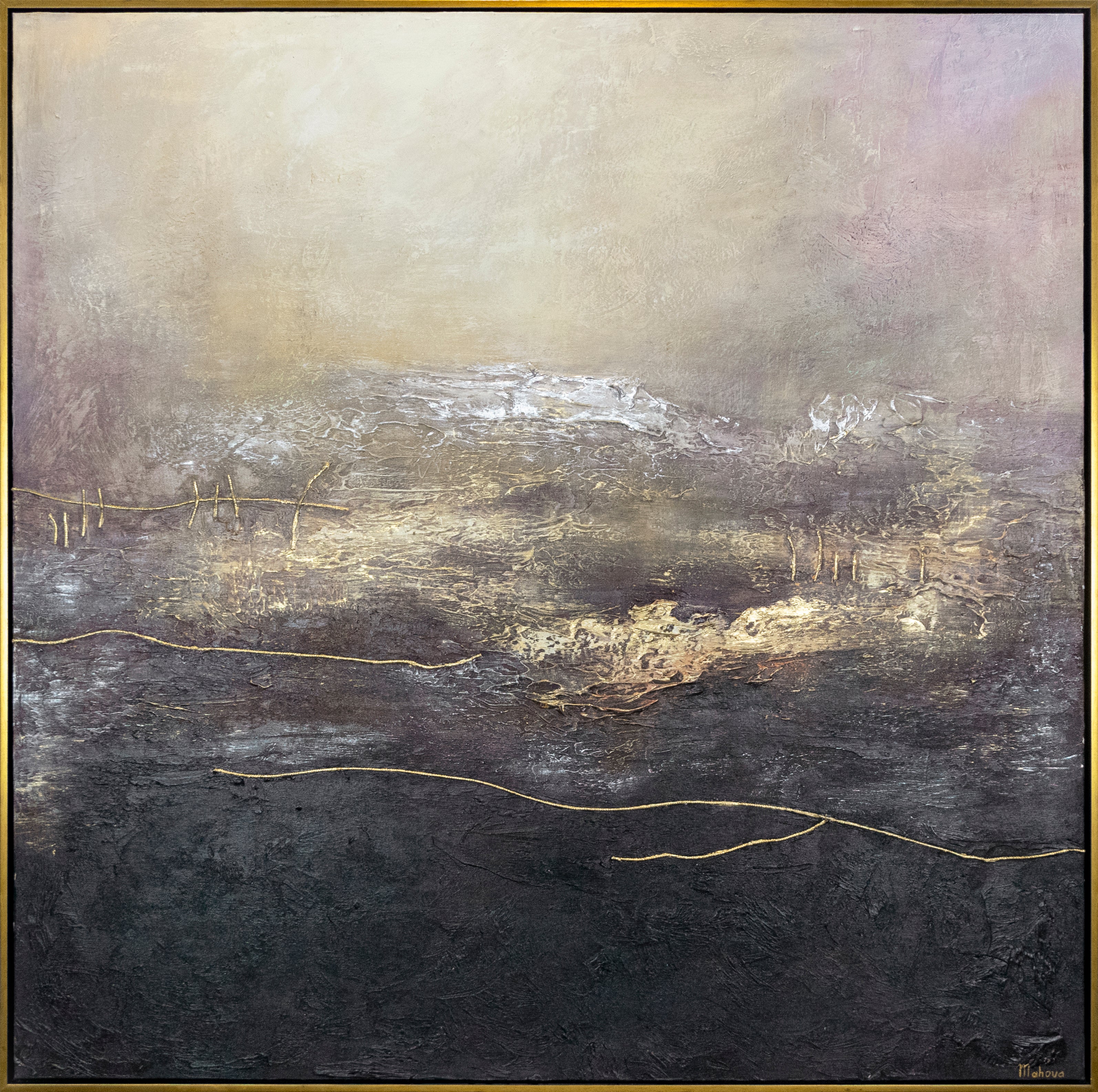 • Abstrakte Acrylkunst Gold Violett Struktur Handarbeit