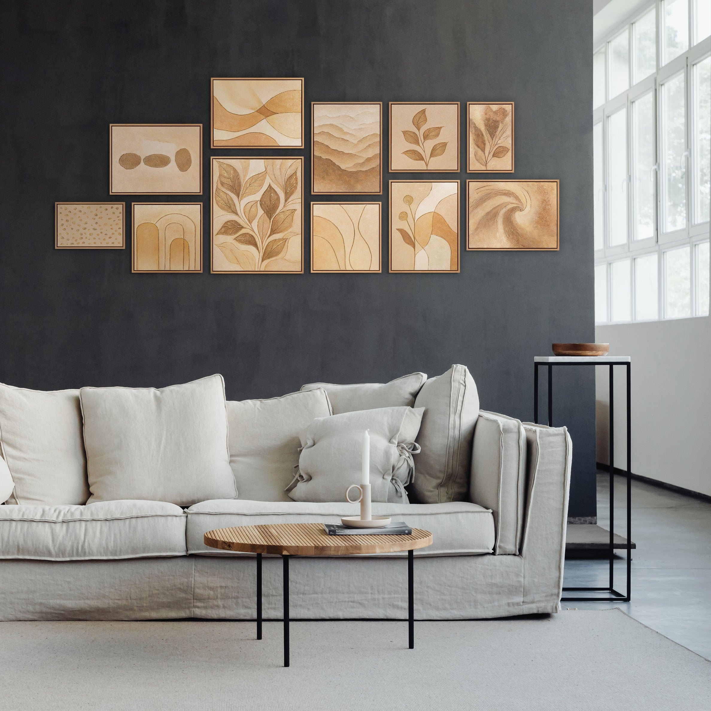 Acryl Gemälde Handgemalt Pflanzenmotiv Bilderrahmen set Beige Farben