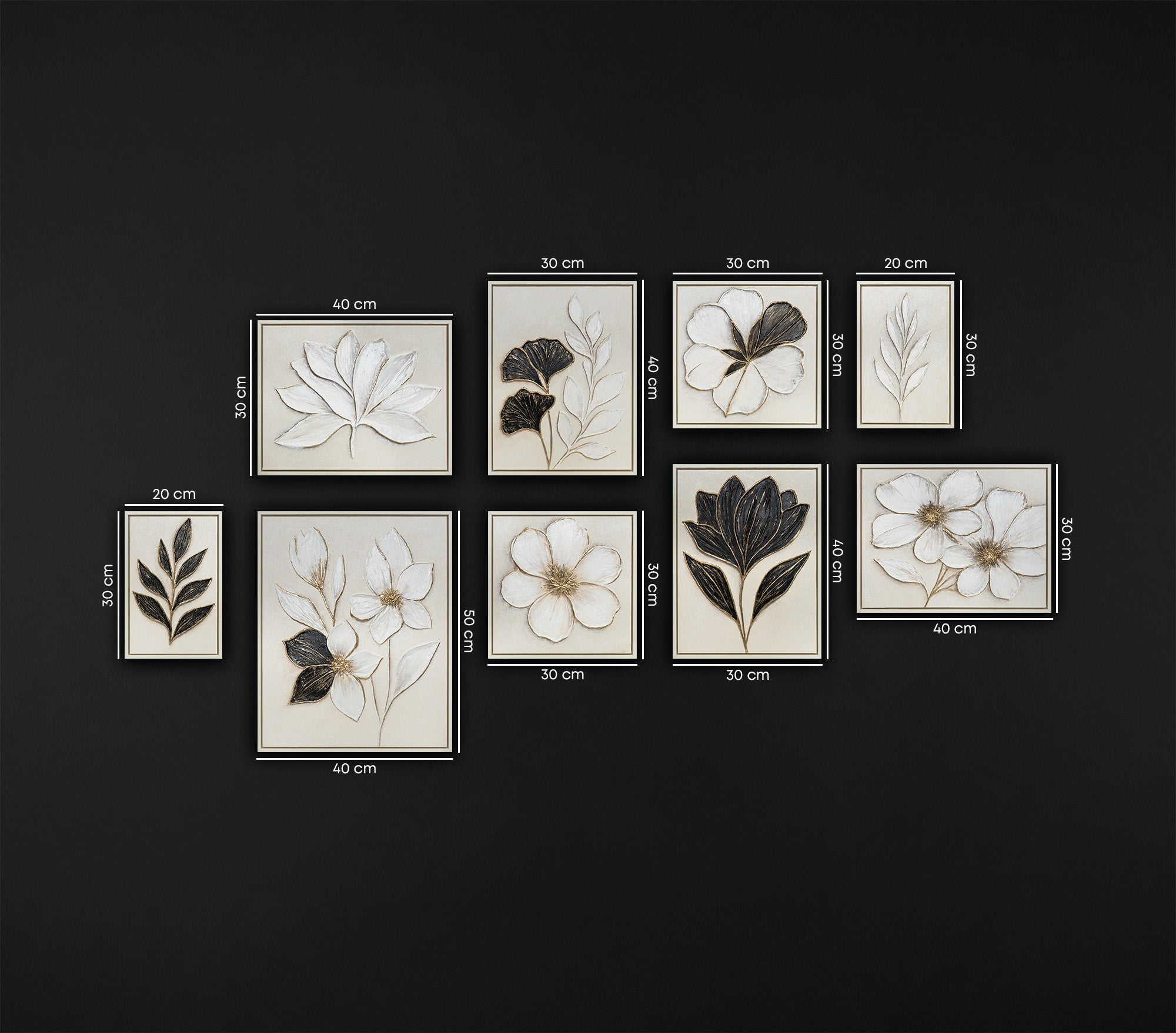 • Boho Wandbilder set mit Rahmen Acrylbilder Handgemalt florales Motiv