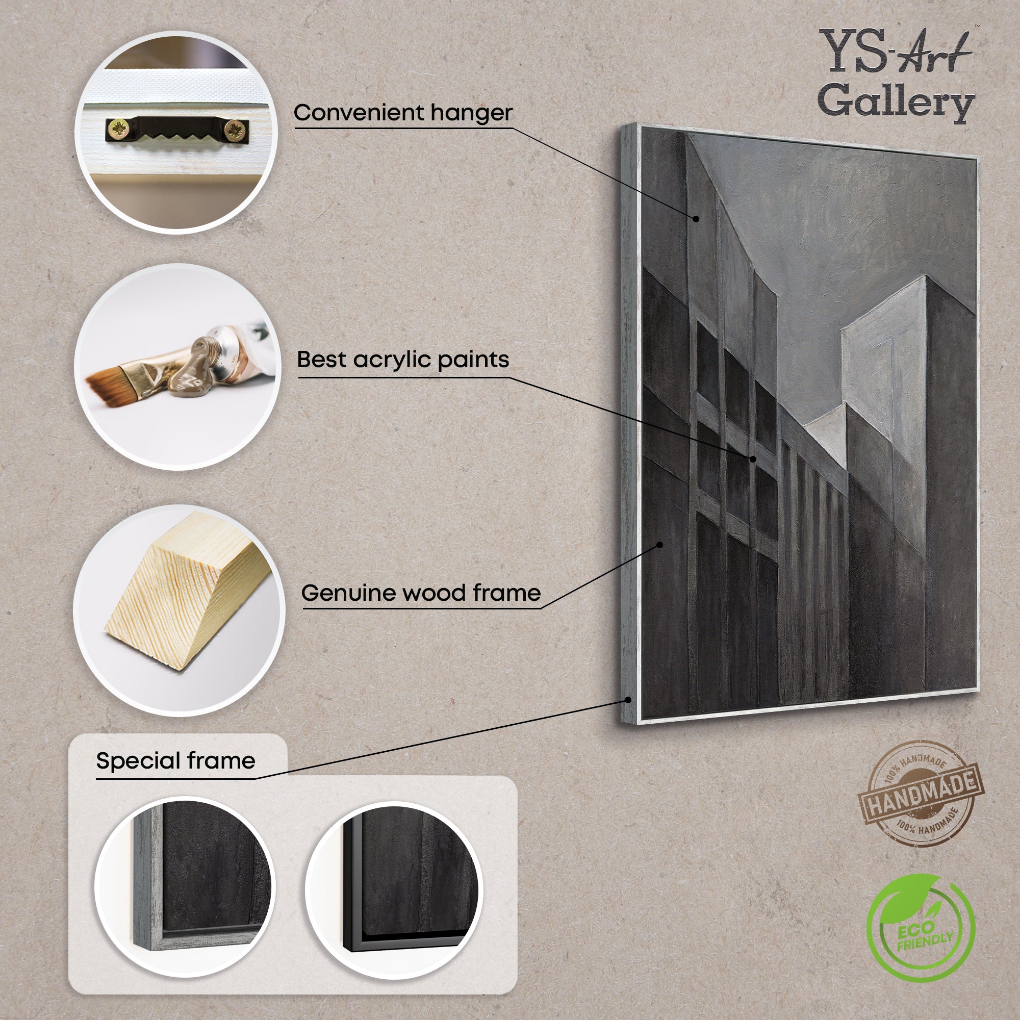 Das handgemalte Acrylbild auf Leinwand überzeugt durch seine ruhige, minimalistische Ausstrahlung und ist perfekt für moderne, industrielle oder minimalistische Räume geeignet. 100 % handgemalt in Deutschland, mit hochwertiger Strukturtechnik gefertigt, sicher verpackt und versandkostenfrei geliefert – Architektur und Kunst in perfekter Harmonie.