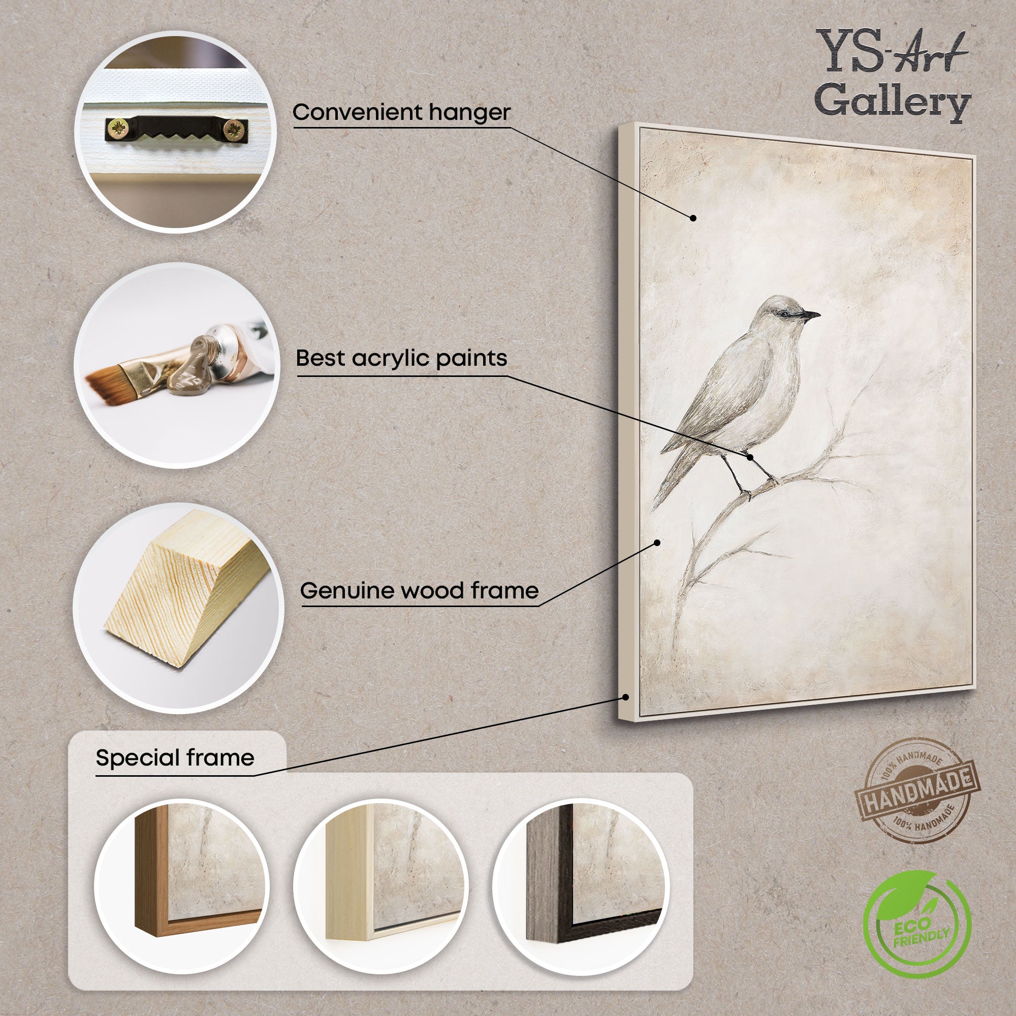 • Handgemalte Acrylmalerei mit Vogelmotiv