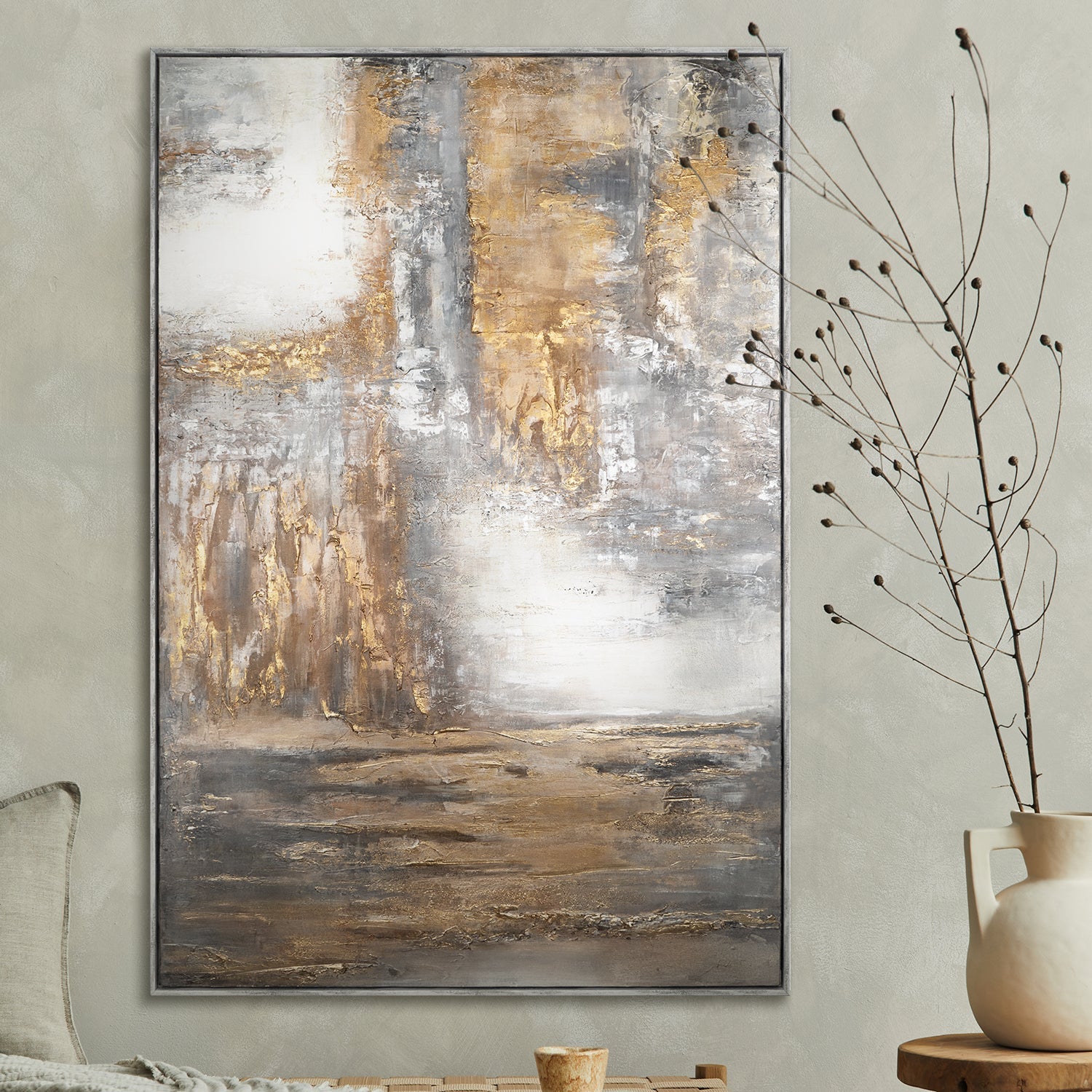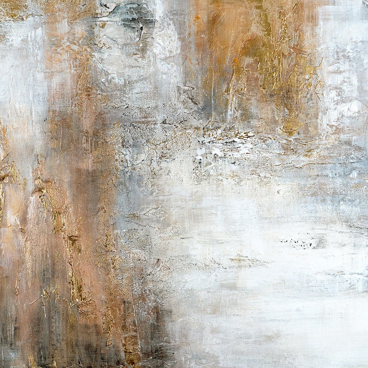 Die abstrakte Komposition „Tagesanbruch“ vereint warme Gold- und Beigetöne mit strukturierten Grauschattierungen, die an das Erwachen eines neuen Tages erinnern. Die pastösen Pinselstriche und feinen Texturen verleihen dem Werk Tiefe und Dynamik. Die vertikale Ausrichtung unterstreicht die Aufwärtsbewegung und vermittelt Leichtigkeit sowie Ruhe – ein idealer Blickfang für Räume mit hoher Decke oder schmalen Wandflächen.