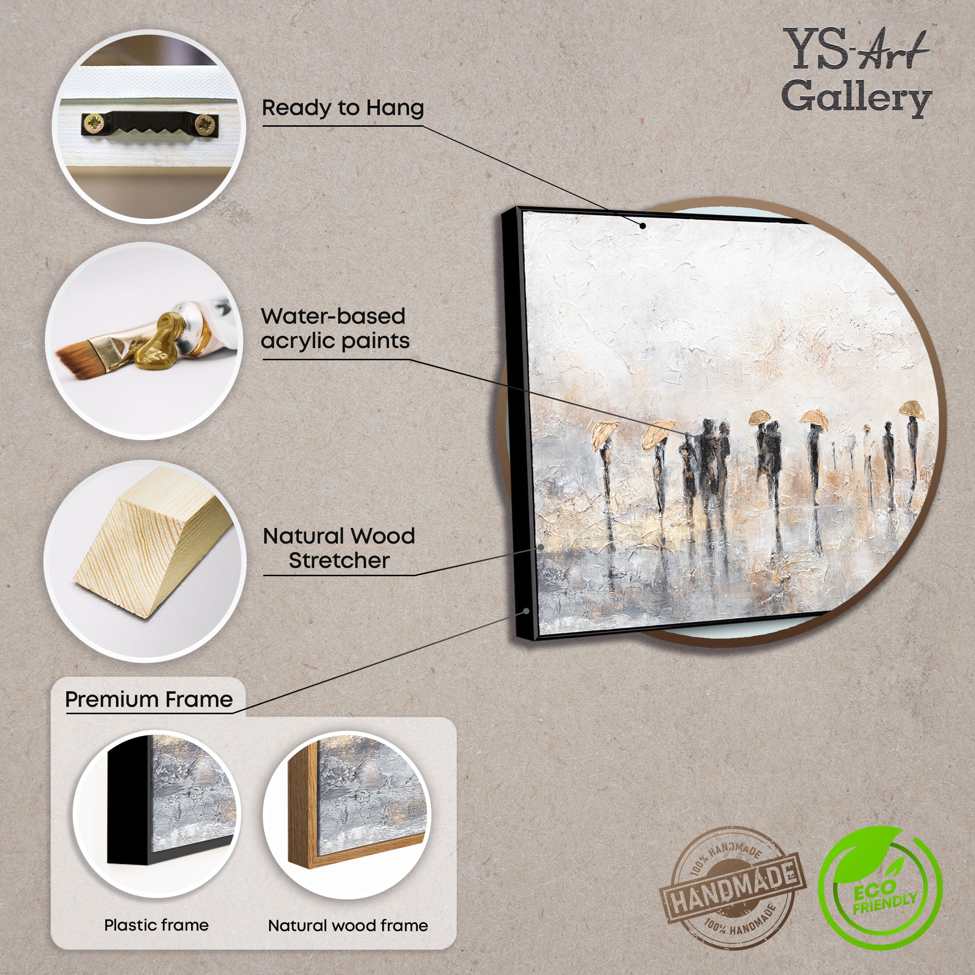 Als ausdrucksstarkes abstraktes Bild auf Leinwand vereint das Gemälde figürliche Andeutungen mit zeitgemäßer Abstraktion. Die schlanken Silhouetten wirken wie Momentaufnahmen einer Szene und lassen viel Raum für eigene Interpretationen. Dadurch fügt sich das Kunstwerk harmonisch in moderne, skandinavische oder minimalistische Interieurs ein.