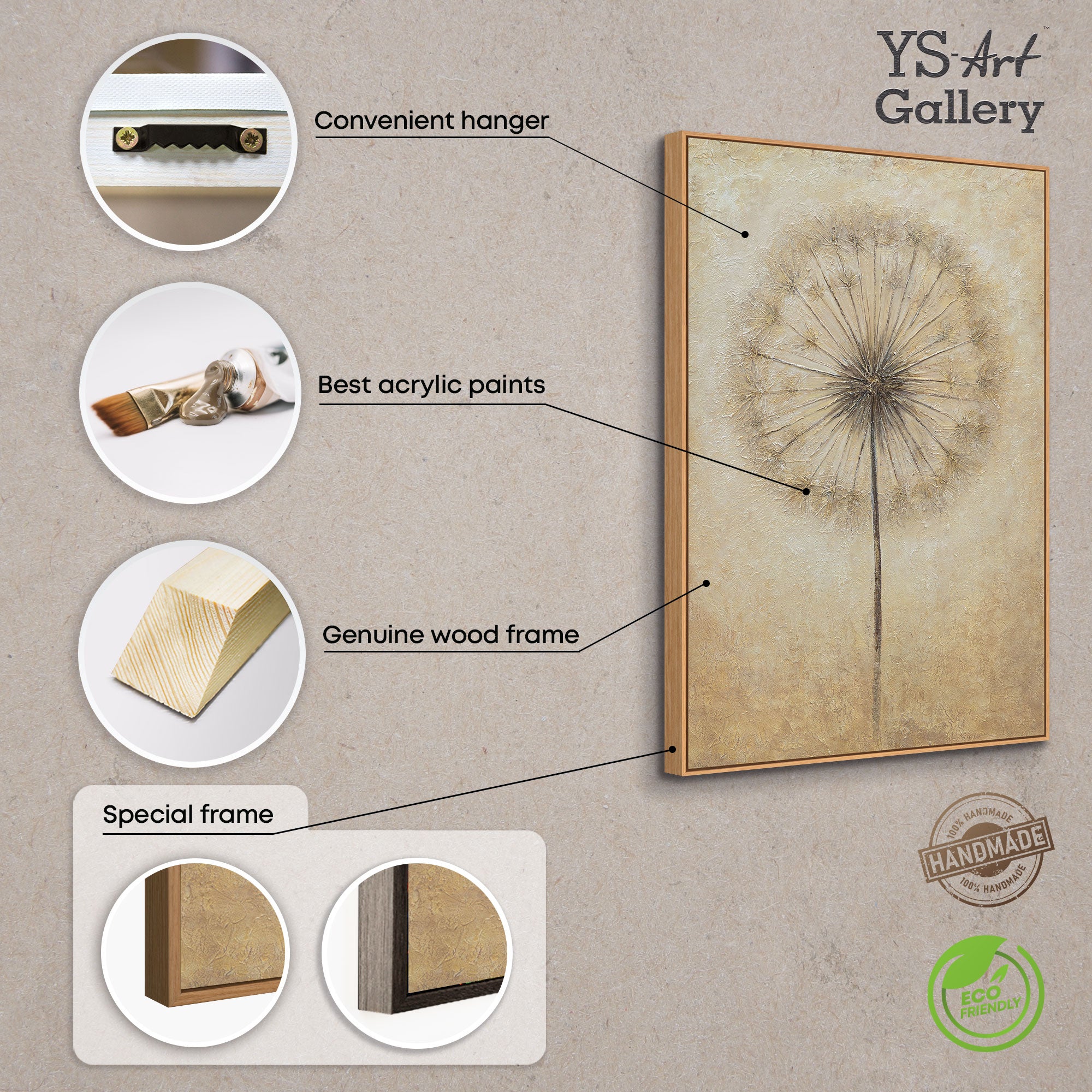 • Handgemalte Acrylmalerei mit feiner Struktur