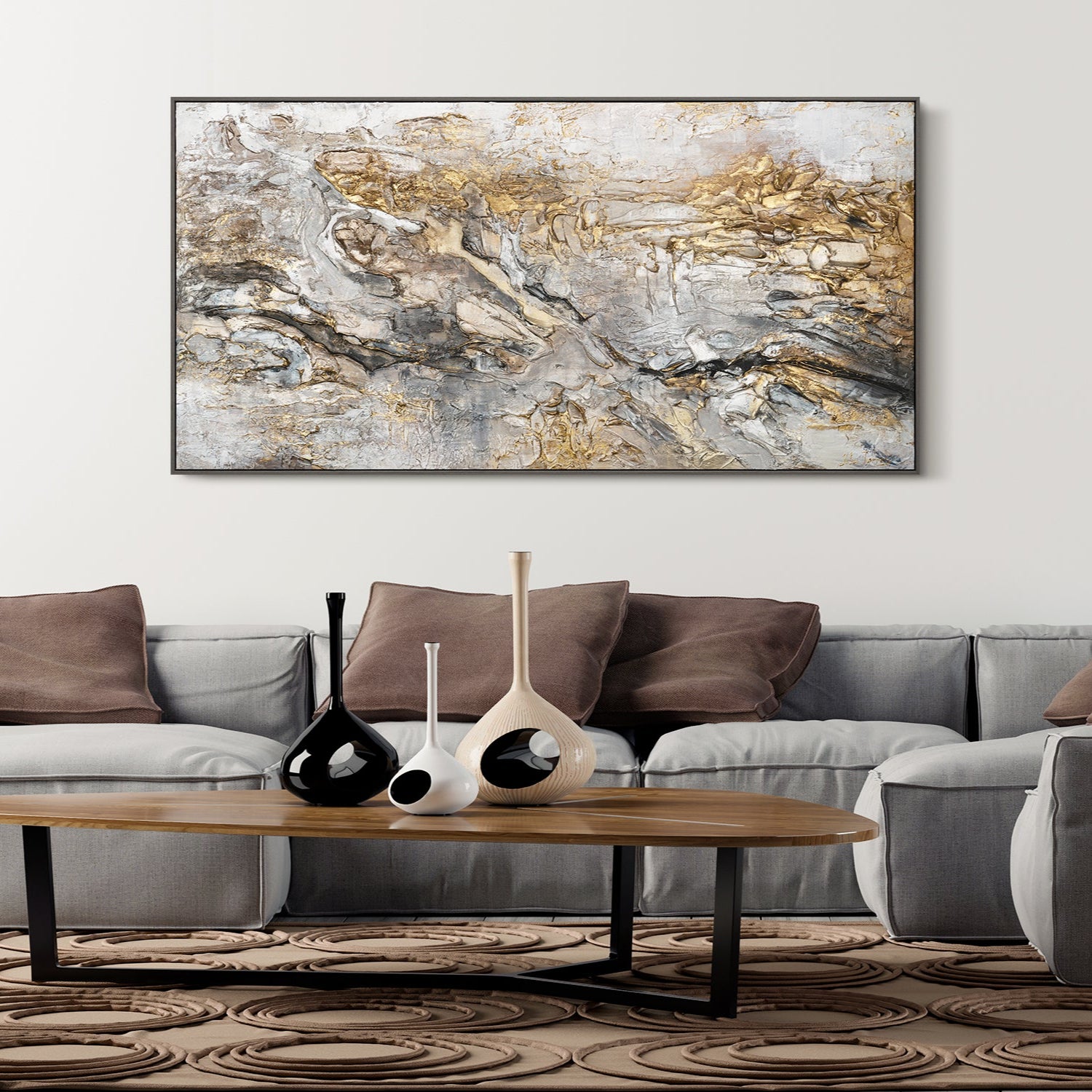 • Acrylbild Gold Grau Strukturmalerei handgemalt im Wohnzimmer