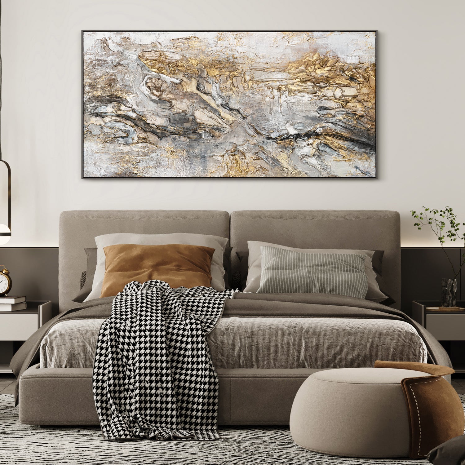 • Strukturierte Acrylmalerei Gold Grau abstrakte Oberfläche