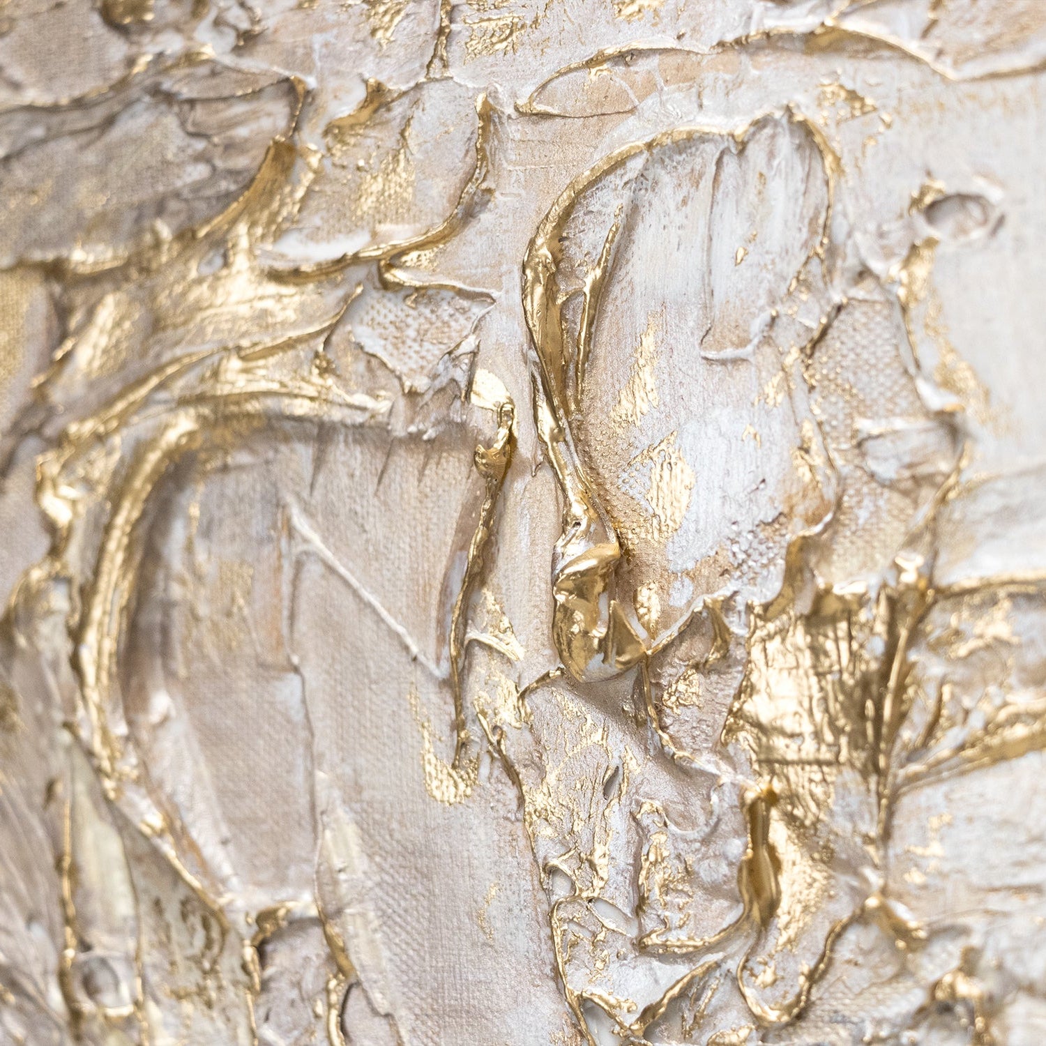 • Abstrakte Acrylmalerei mit Struktur in Beige und Gold