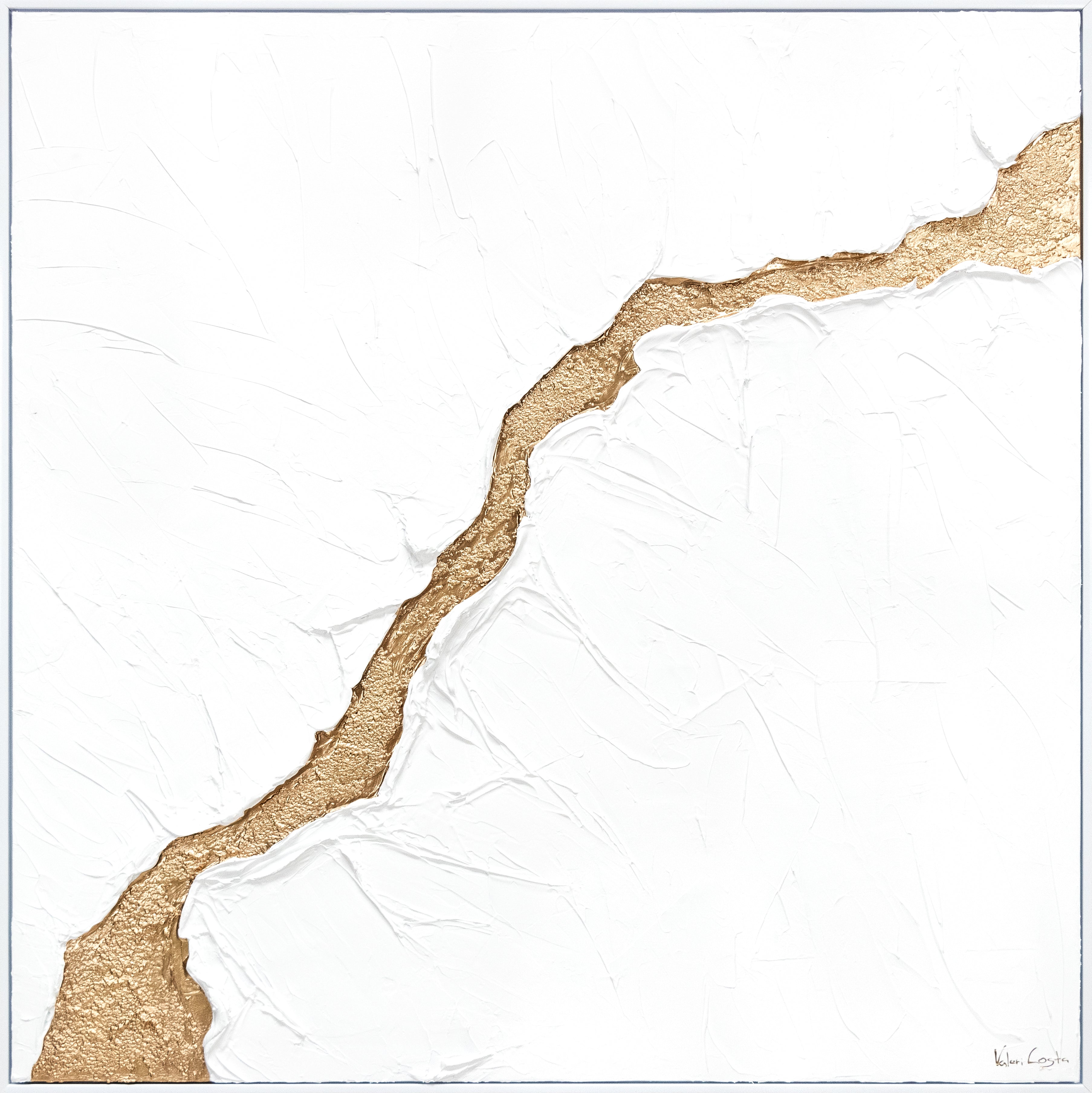 • Abstraktes Acrylbild Gold Weiss Struktur Design Wandkunst