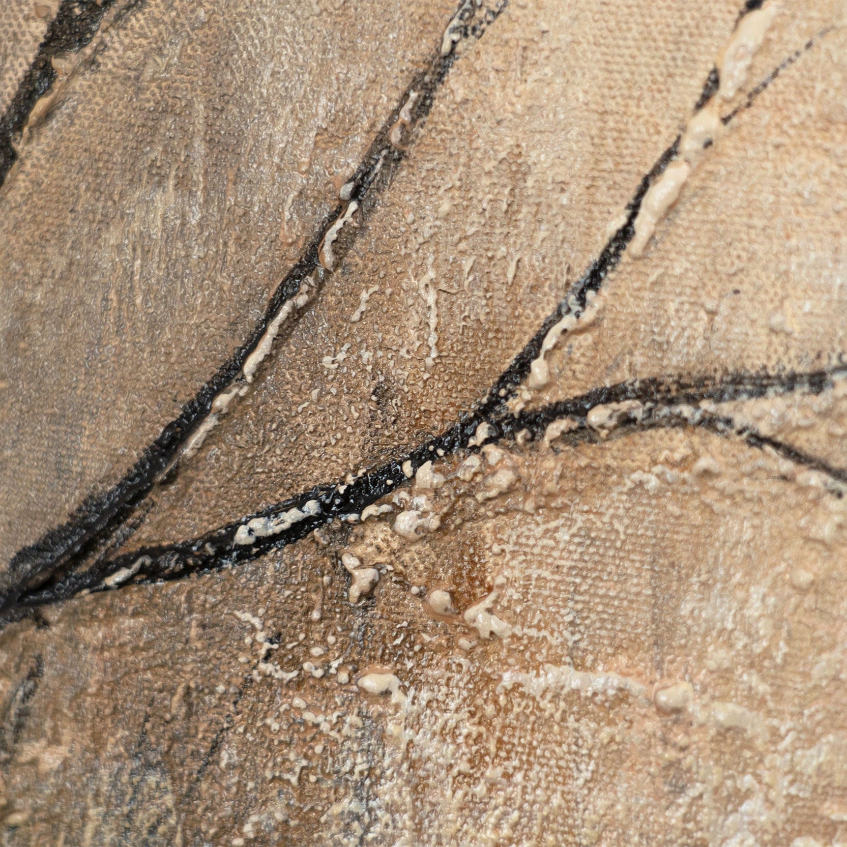 Handgemaltes Bild mit Rahmen „Ast und Schatten“ – Moderner Wanddeko in Beige und Schwarz