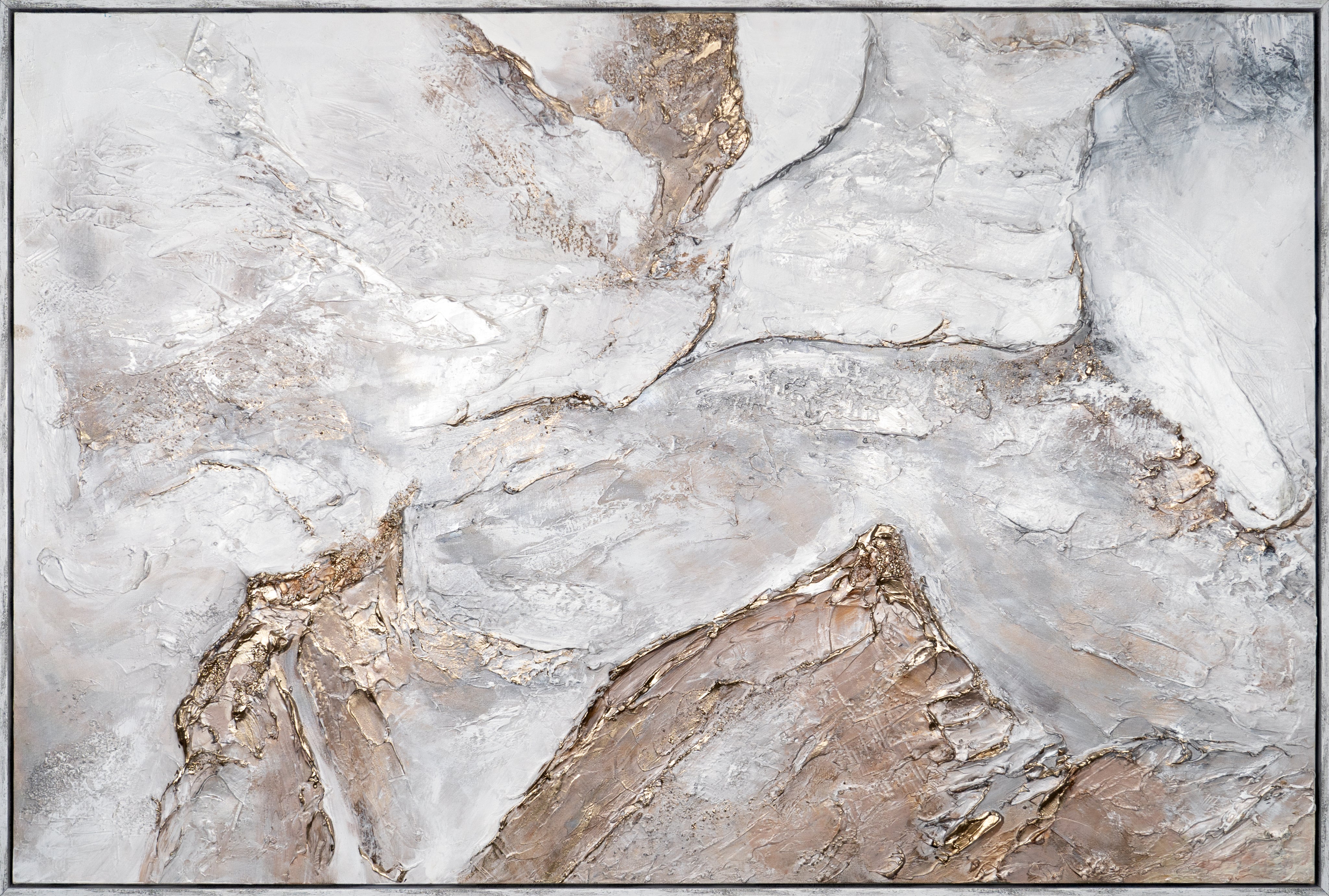 Abstraktes Acrylgemälde in Silber und Gold mit Rahmen Norden